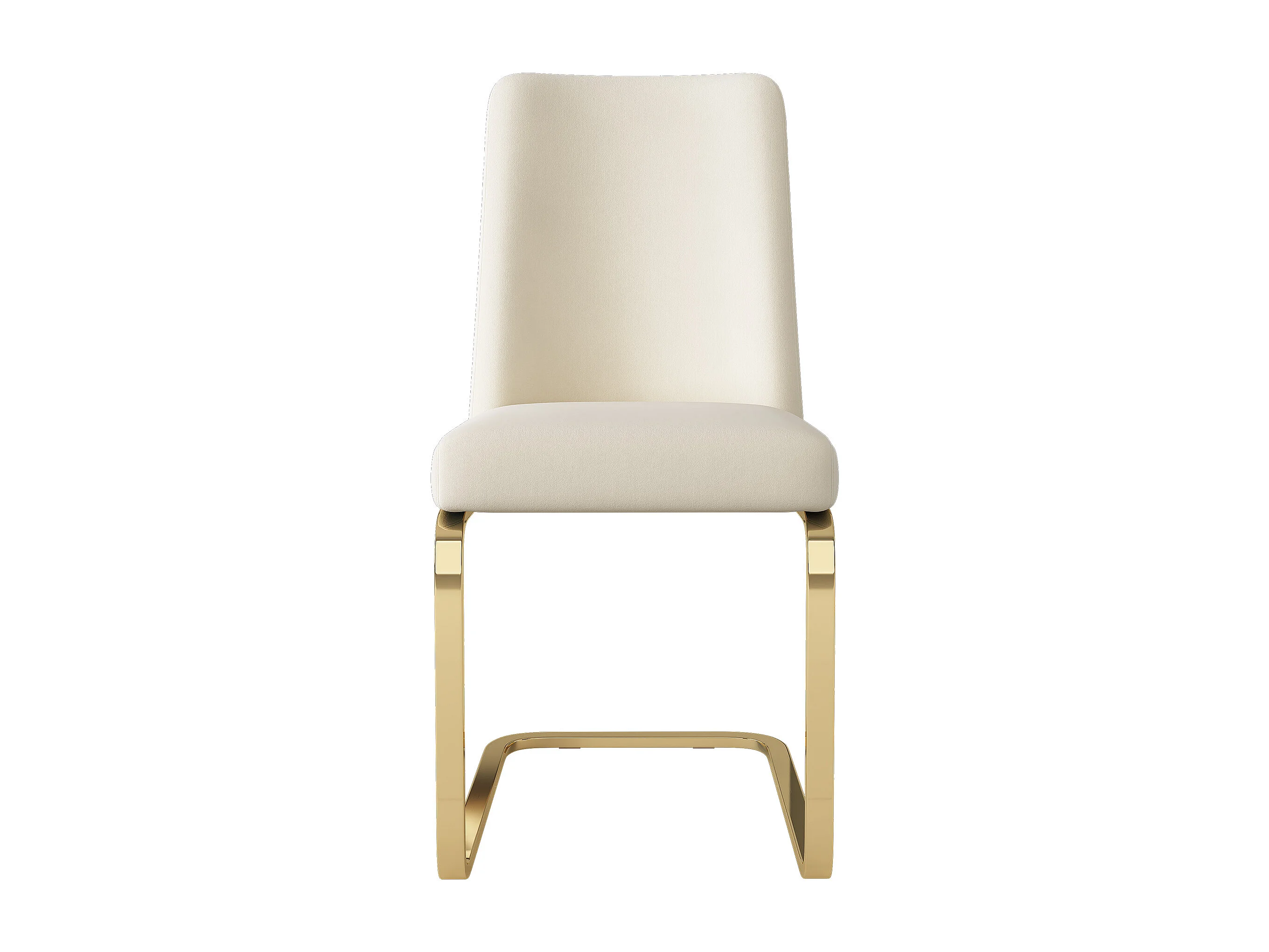Set van 4 beige fluwelen stoelen - Gouden metalen poten - Rugleuning met ruitpatroon
