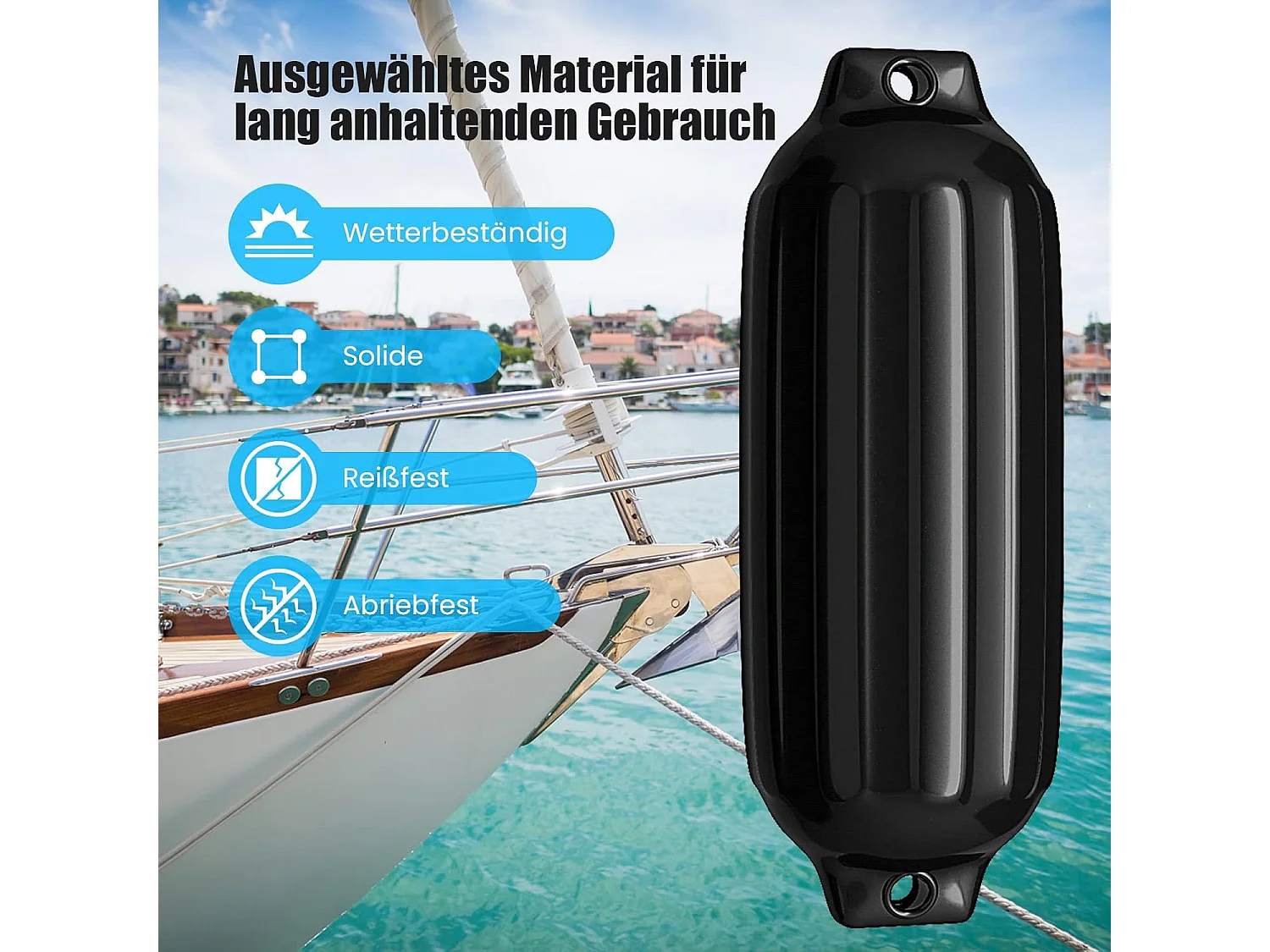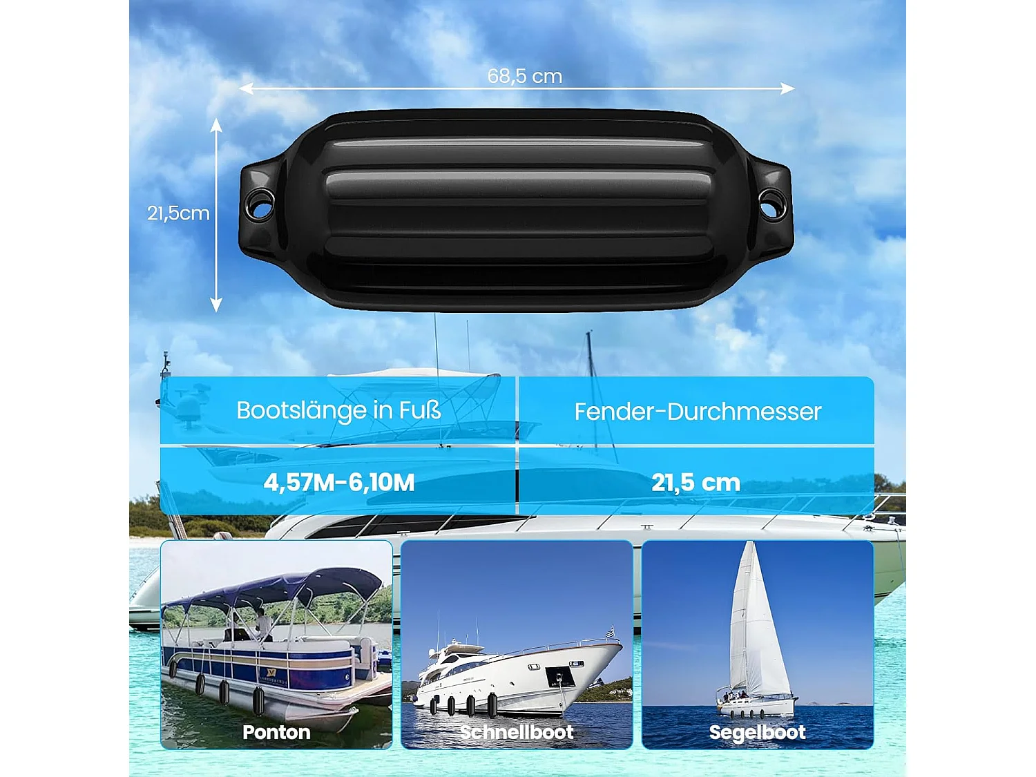 Set van 4 bootswillen lange spatborden kogelspatbord set boot bescherming brug spatbord (58 x 16,5 cm, zwart)AB4783
