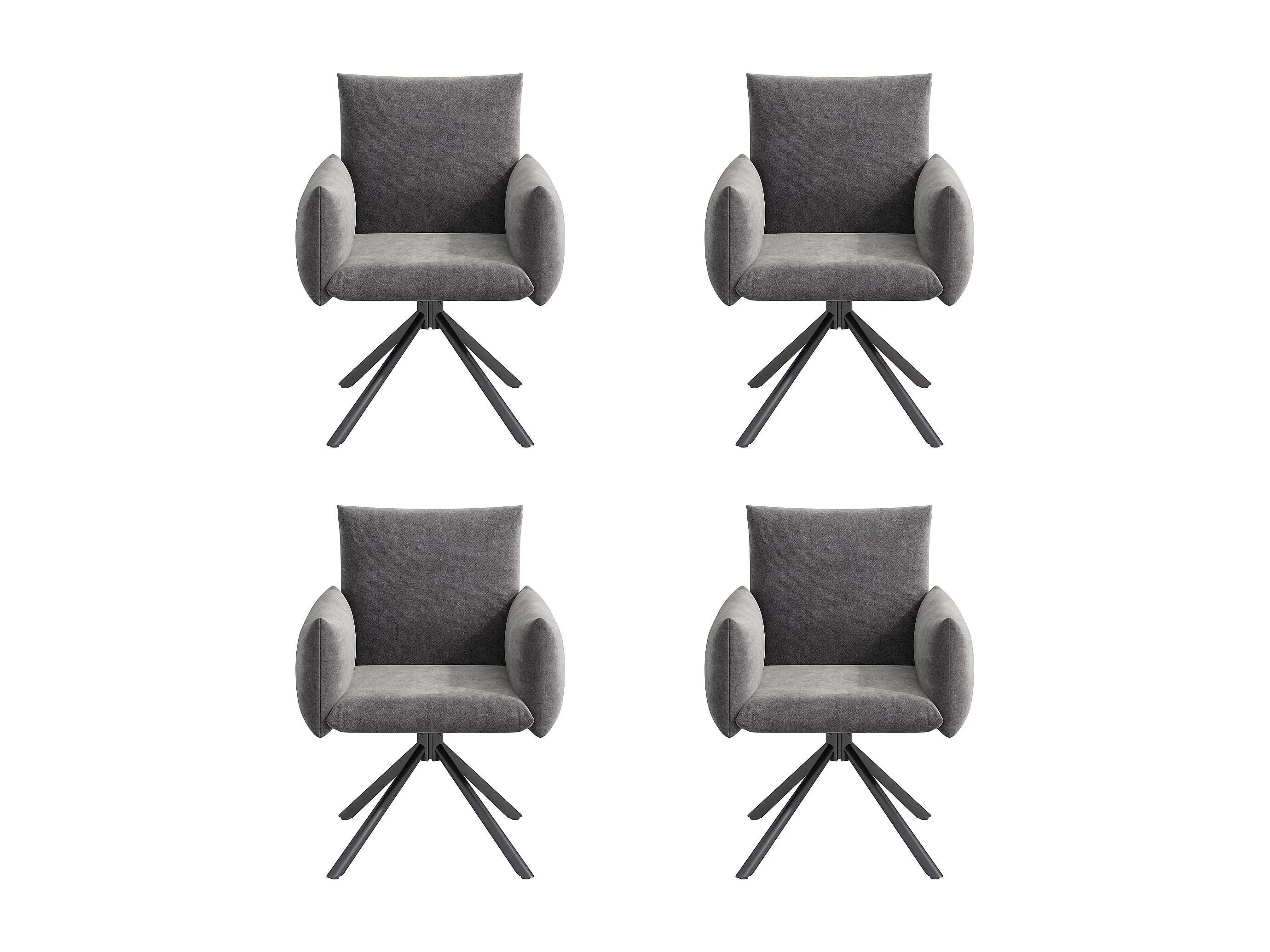 Set van 4 draaibare stoelen in grijs fluweel - Metalen poten - Voor woonkamer, slaapkamer, kantoor