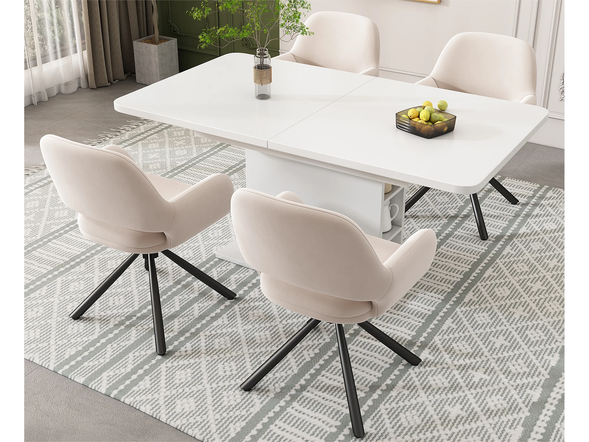 Set van 4 Draaistoelen met armleuningen - fluwelen stof - moderne stijl - Wit
