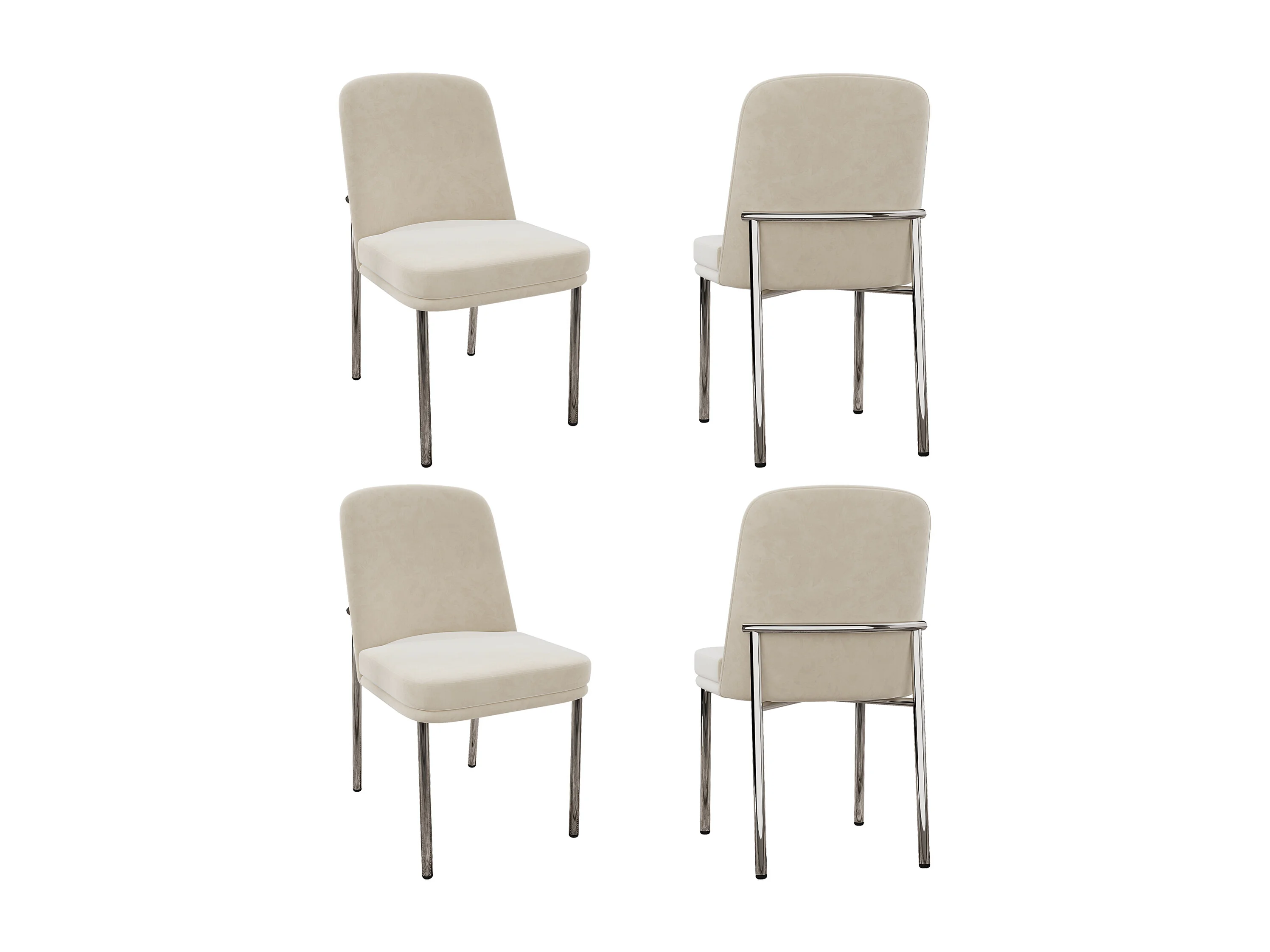 Set van 4 eetkamerstoelen - 42,5 x 53 x 82 cm - met dikke zitkussens en zilveren metalen poten - fluweel - beige