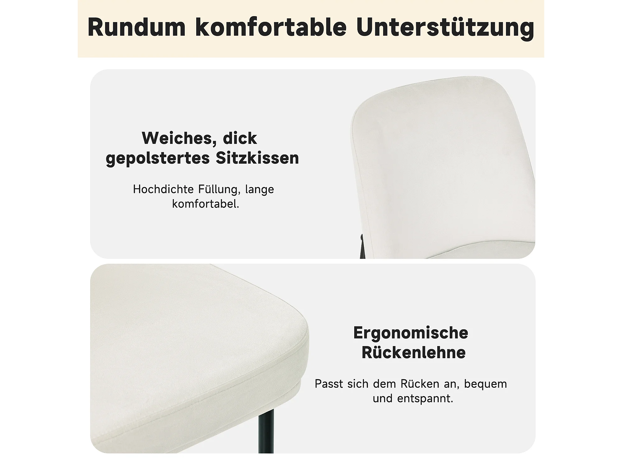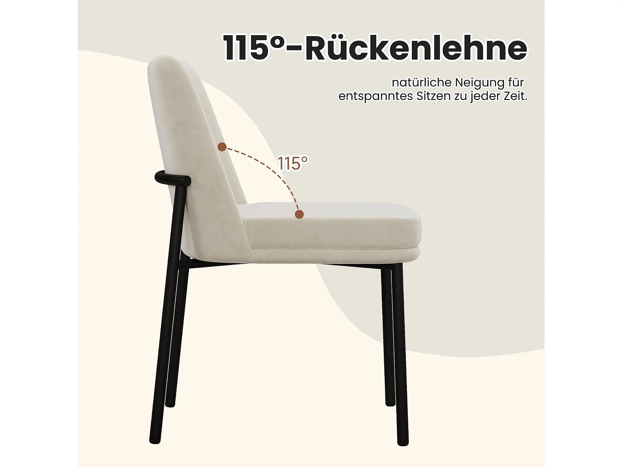 Set van 4 eetkamerstoelen - 42,5 x 53 x 82 cm - met dikke zitkussens en zwarte metalen poten - fluweel - beige