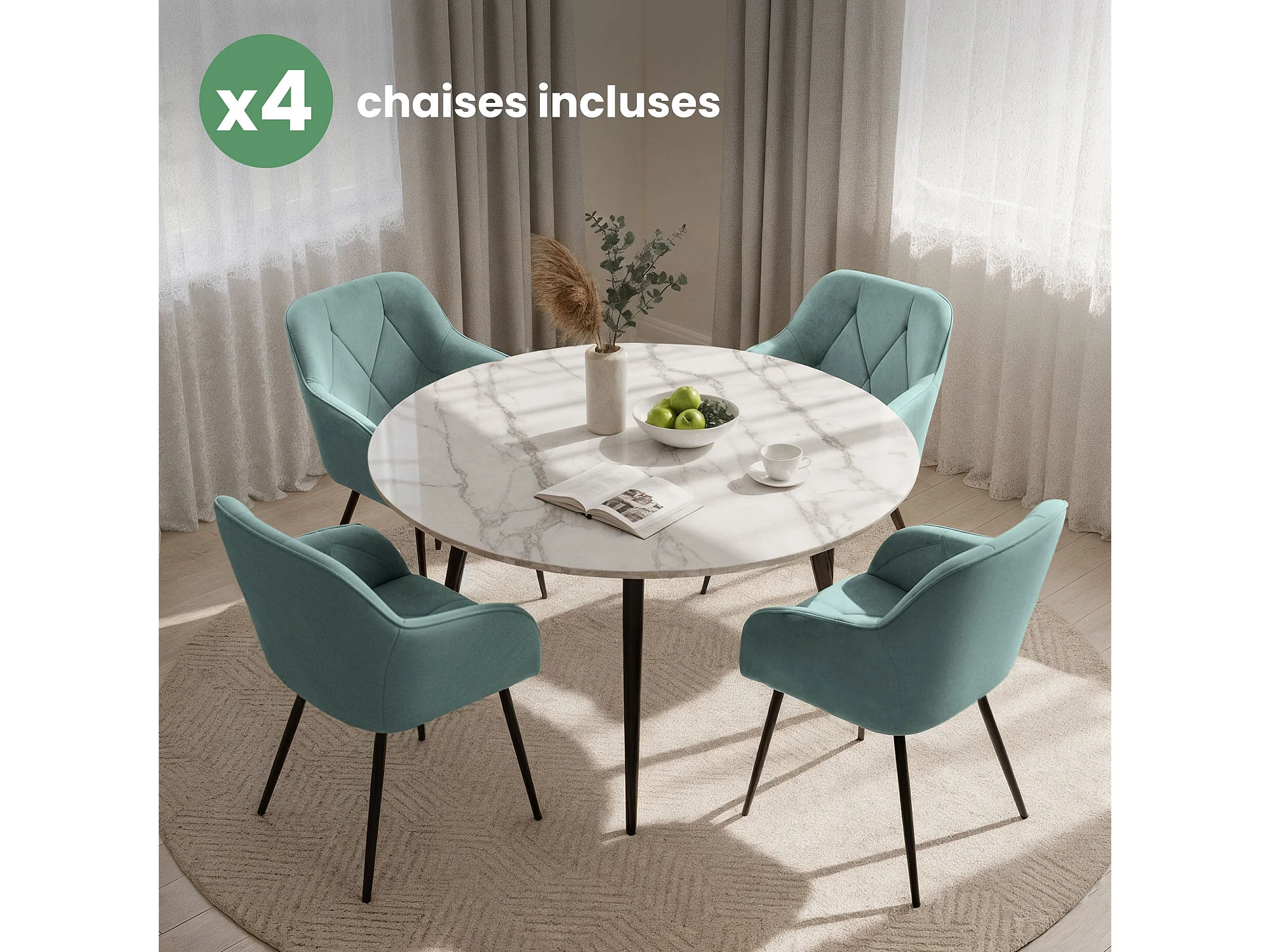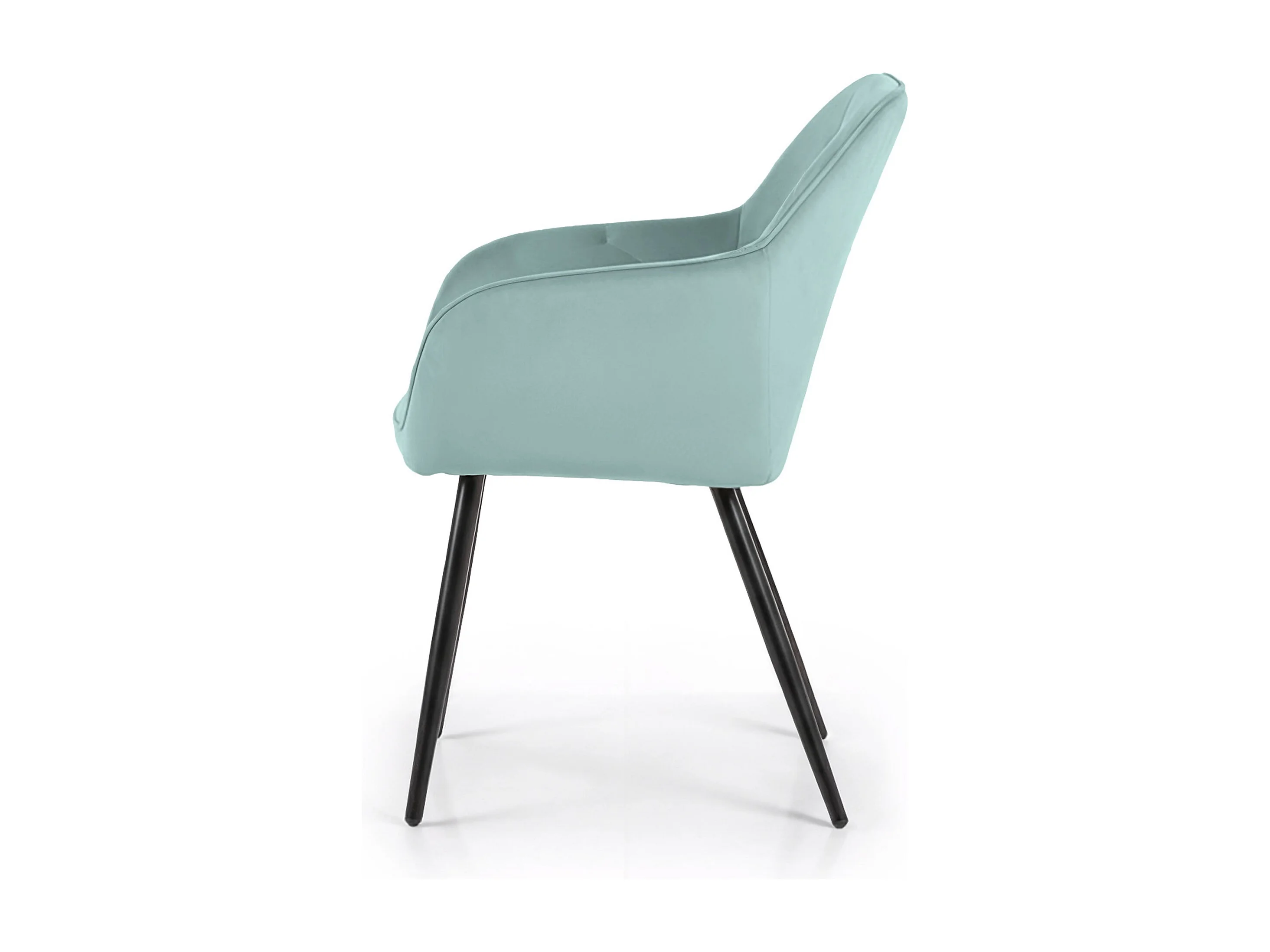 Set van 4 Eetkamerstoelen DIAMANTE met Armleuningen / Gestoffeerde Stoelen / Fluwelen Stoelen en Metalen Poten / Turkooizen kleur met zwarte benen