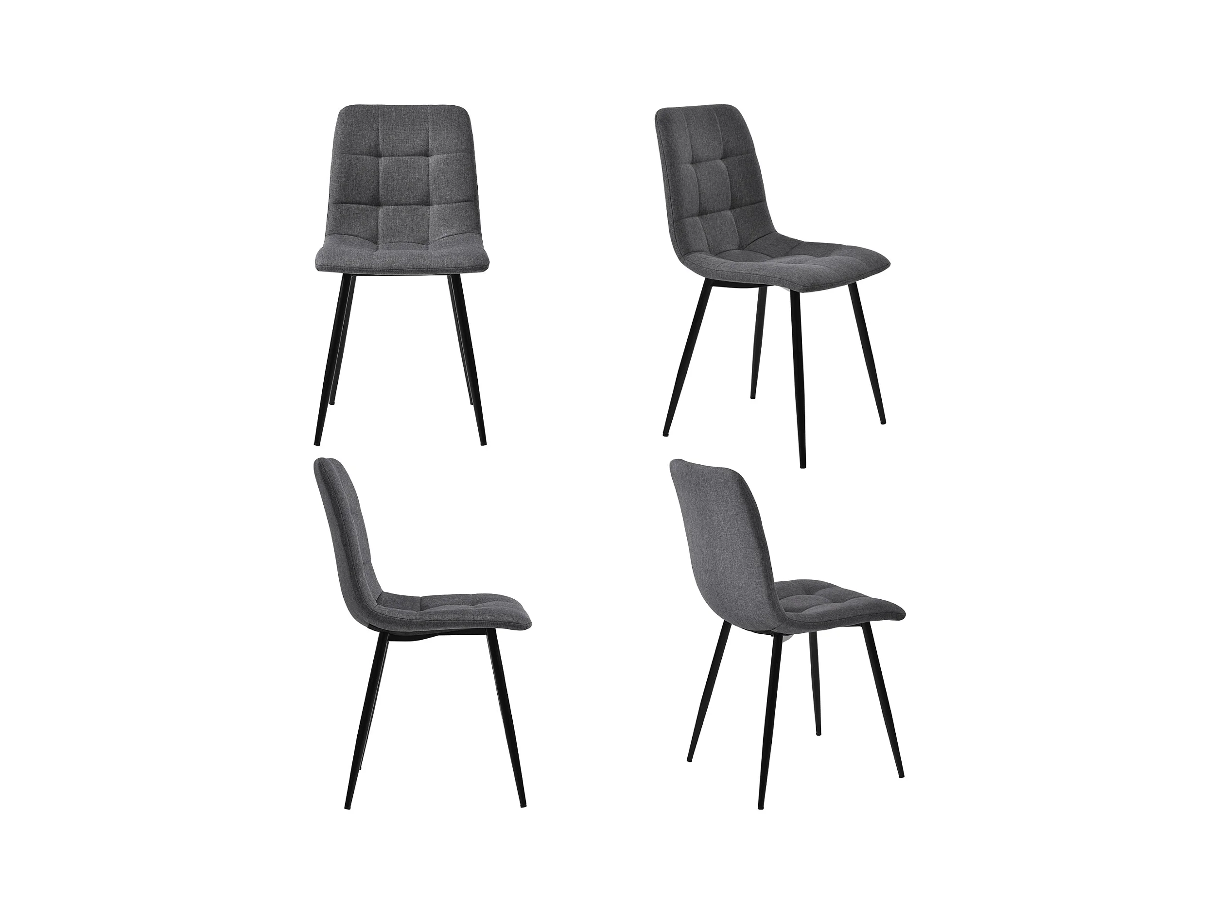 Set van 4 eetkamerstoelen – donkergrijs linnen, gestoffeerd, metalen frame, elegant design