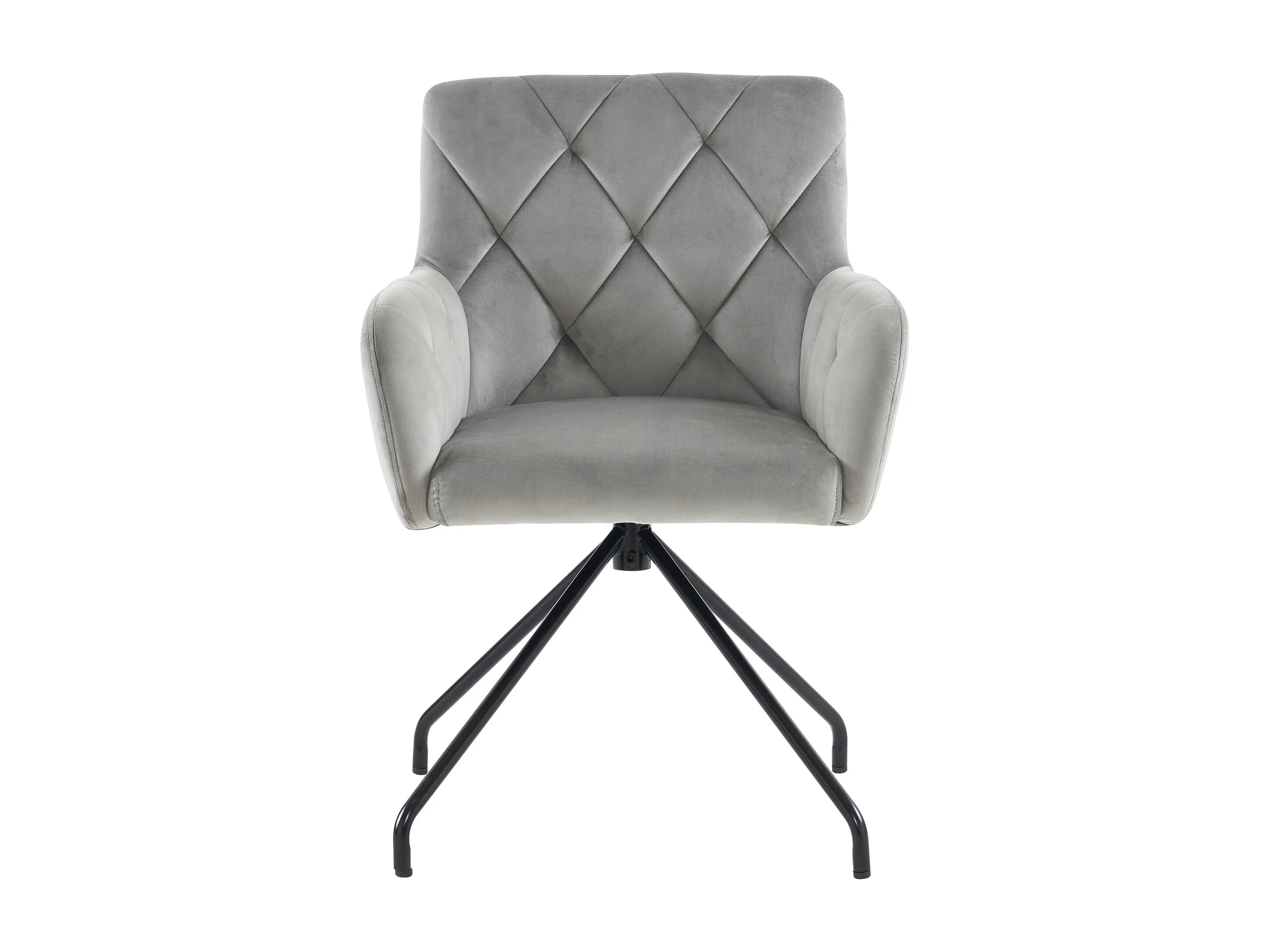 Set van 4 eetkamerstoelen, lichtgrijs fluweel, stoel met rugleuning met ruitpatroon, zwarte metalen poten