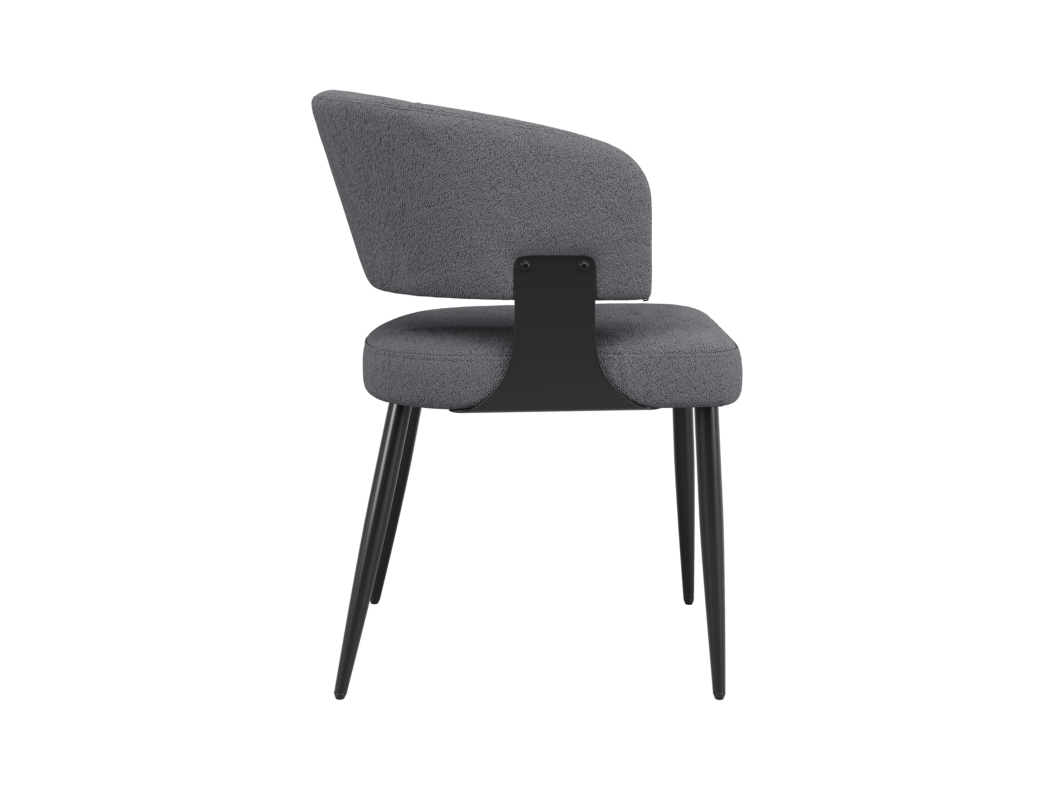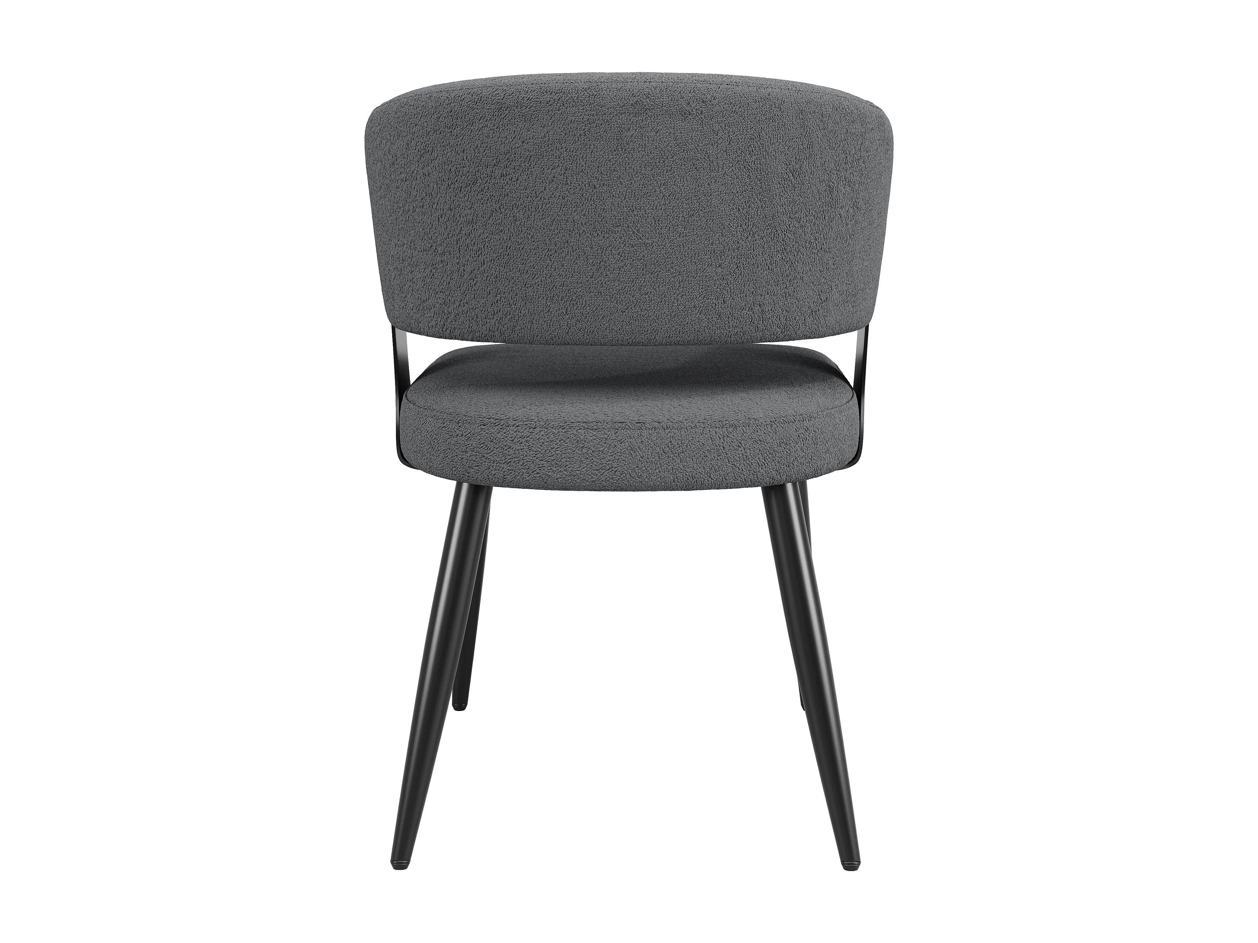 Set van 4 eetkamerstoelen met gebogen rugleuningen en zwarte metalen poten - grijs pluche