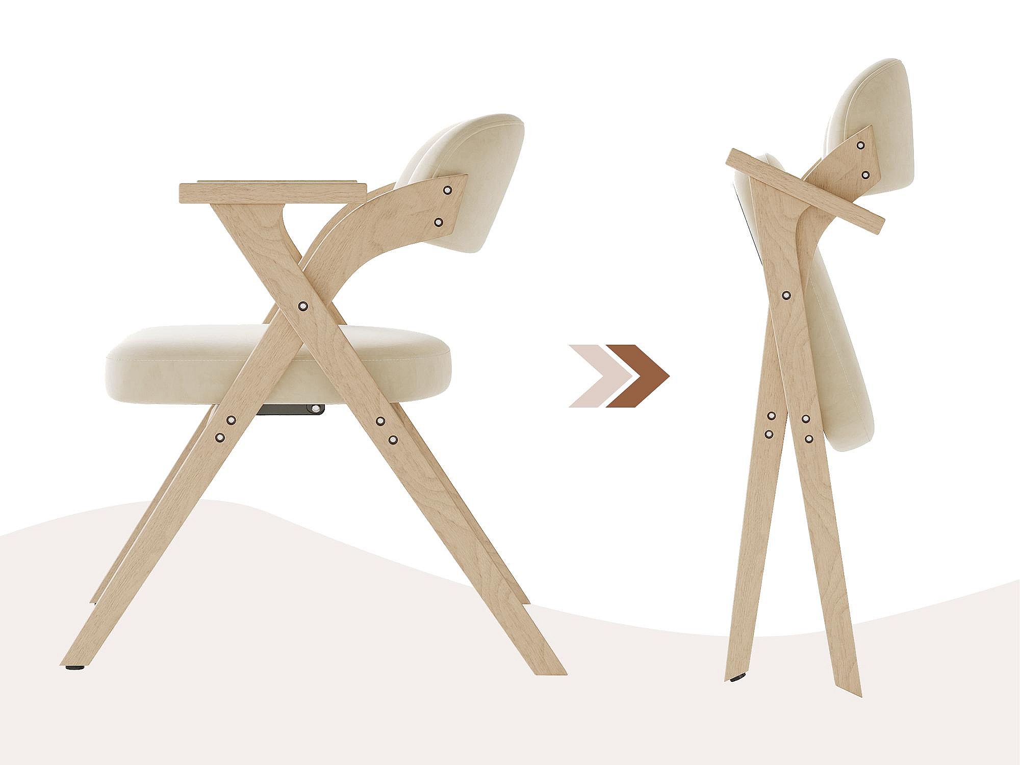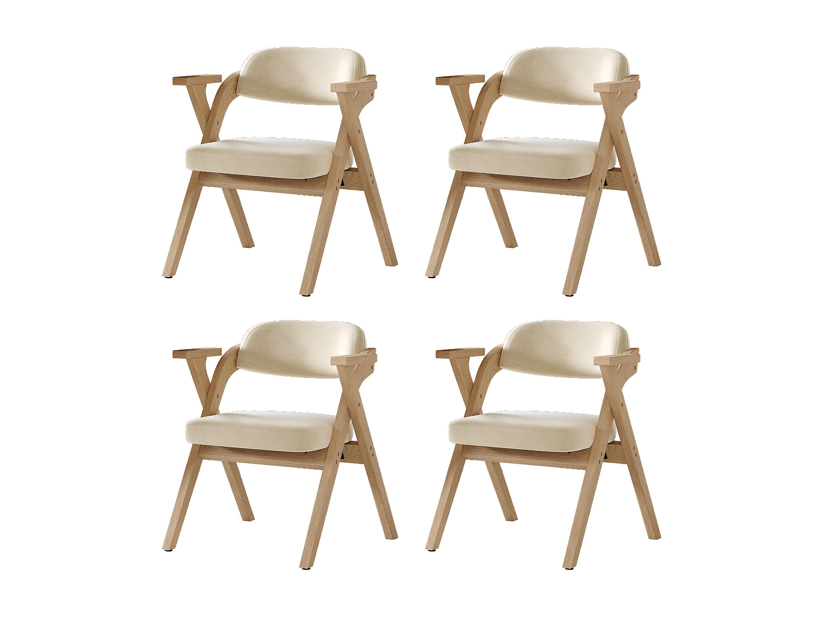 Set van 4 eetkamerstoelen - Opvouwbaar - zitting van fluweel - Structuur van massief hout - Beige