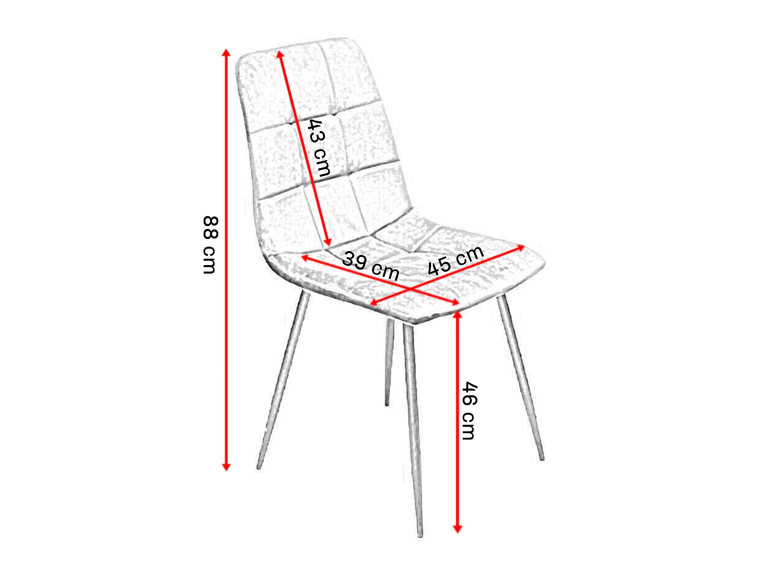 Set van 4 Eetkamerstoelen, Stoel met Fluwelen Bekleding, Metalen Frame, Comfortabele Gevoerde Rugleuning en Onderstel.