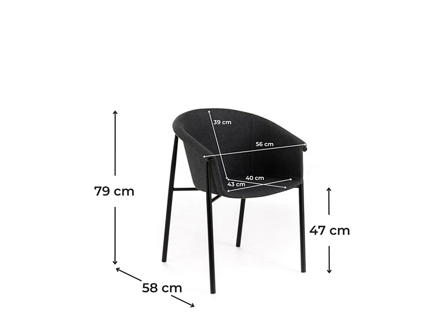 Set van 4 elegante moderne donkergrijze "Orchidea" stoffen stoelen met geverfd metalen frame