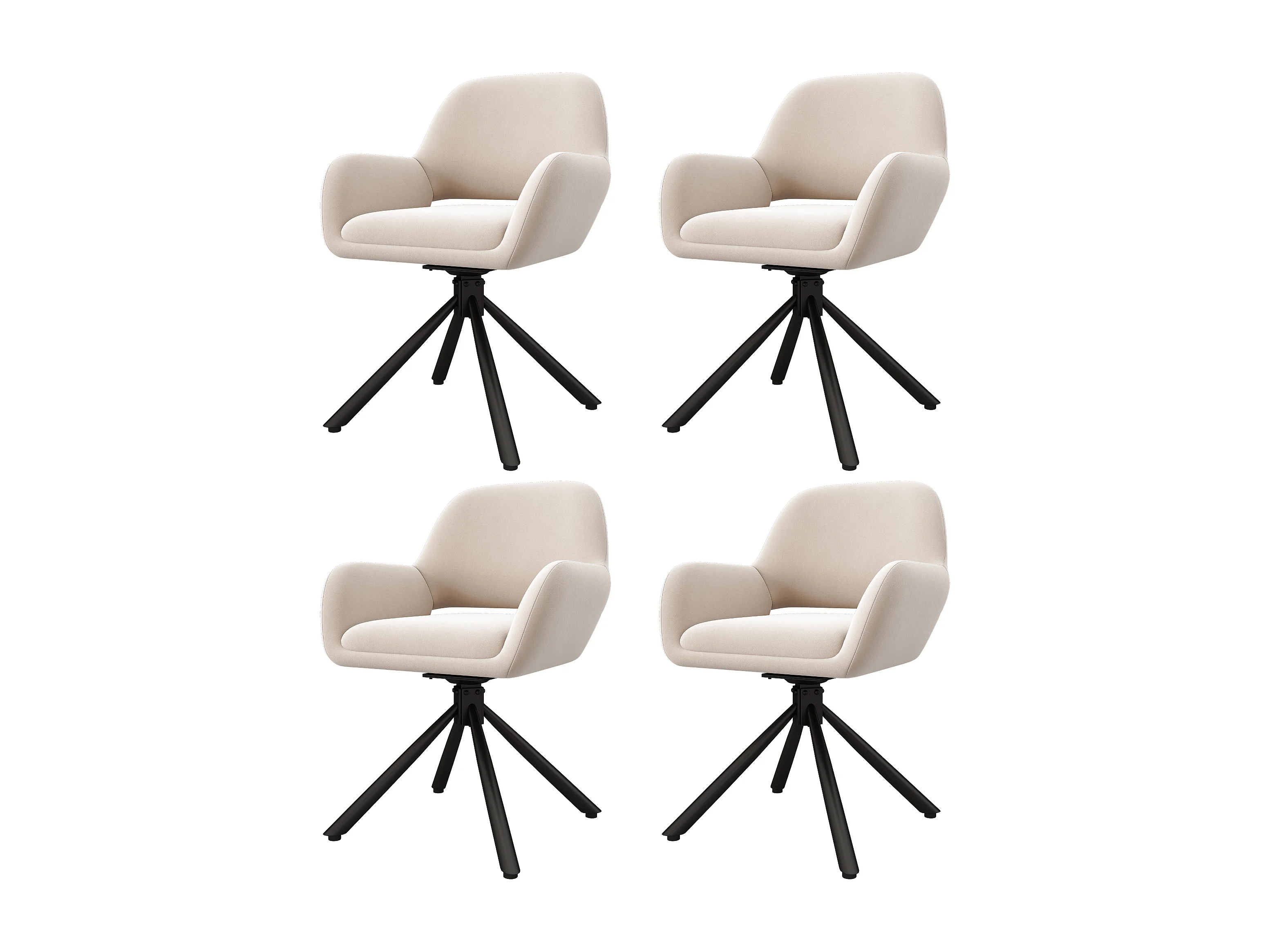 Set van 4 fluwelen draaistoelen met armleuningen, modern design – beige