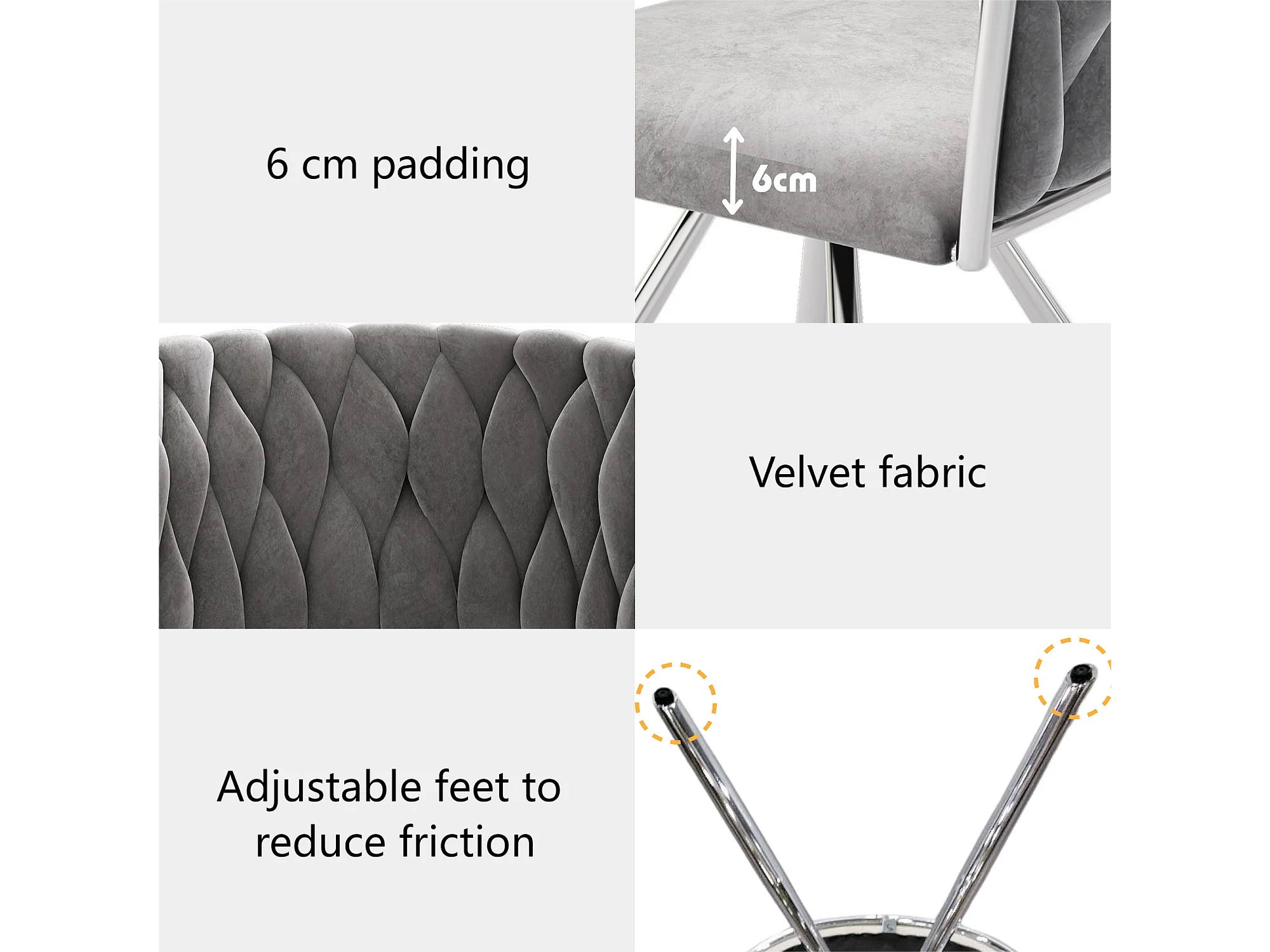 Set van 4 fluwelen draaistoelen met armleuningen - zilveren metalen poten - Grijs