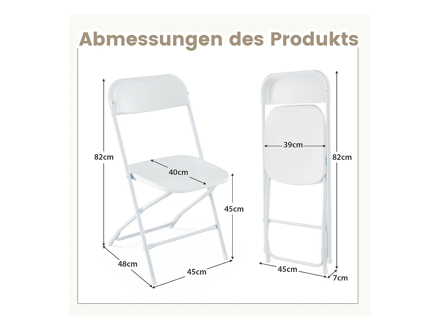 set van 4, gaststoelen, inklapbaar, 350 kg draagvermogen, draagbare tuinstoelen met metalen frame, voor thuis, kantoor, bruiloft, feest, wit ZB33134