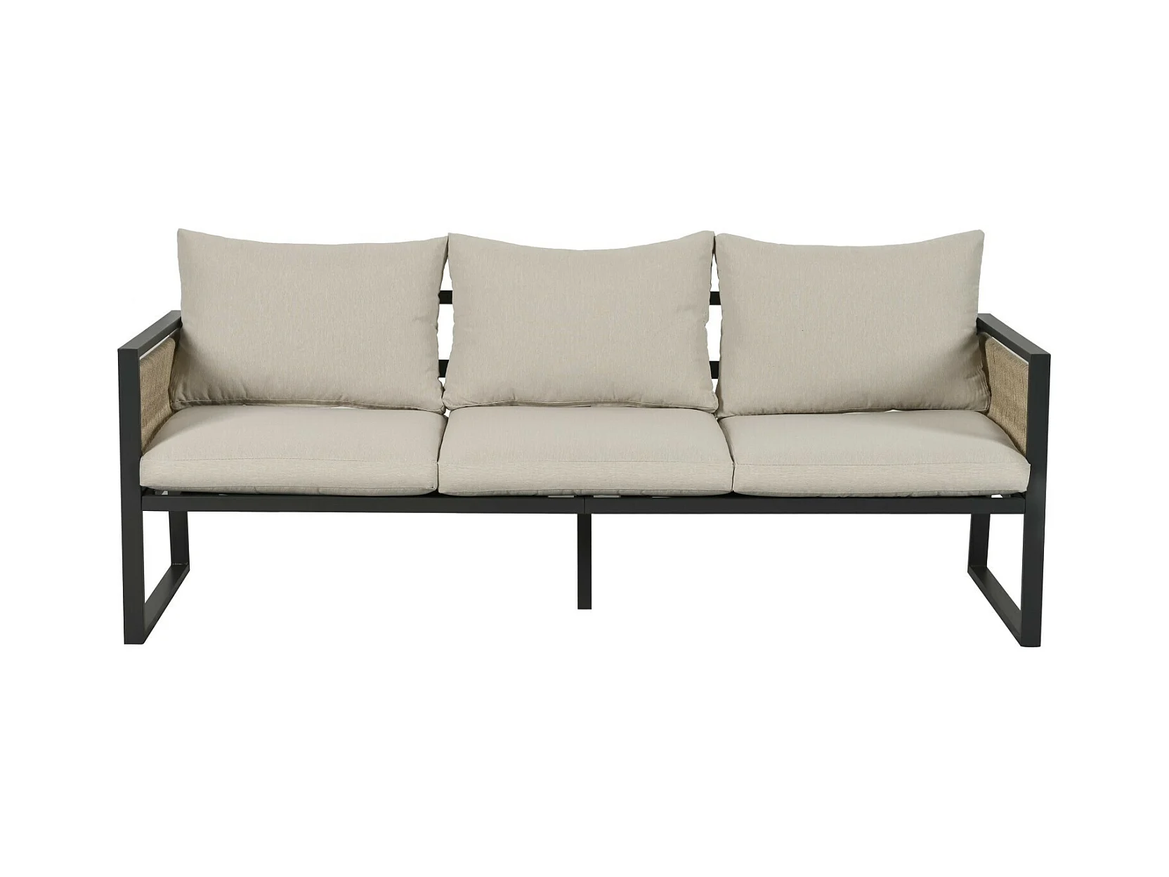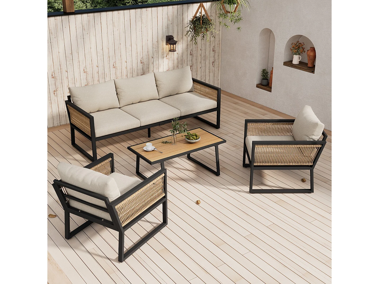 Set van 4 gegalvaniseerd stalen tuinmeubilair met beige kussen: 3 -seater bank, 2 fauteuils en salontafel