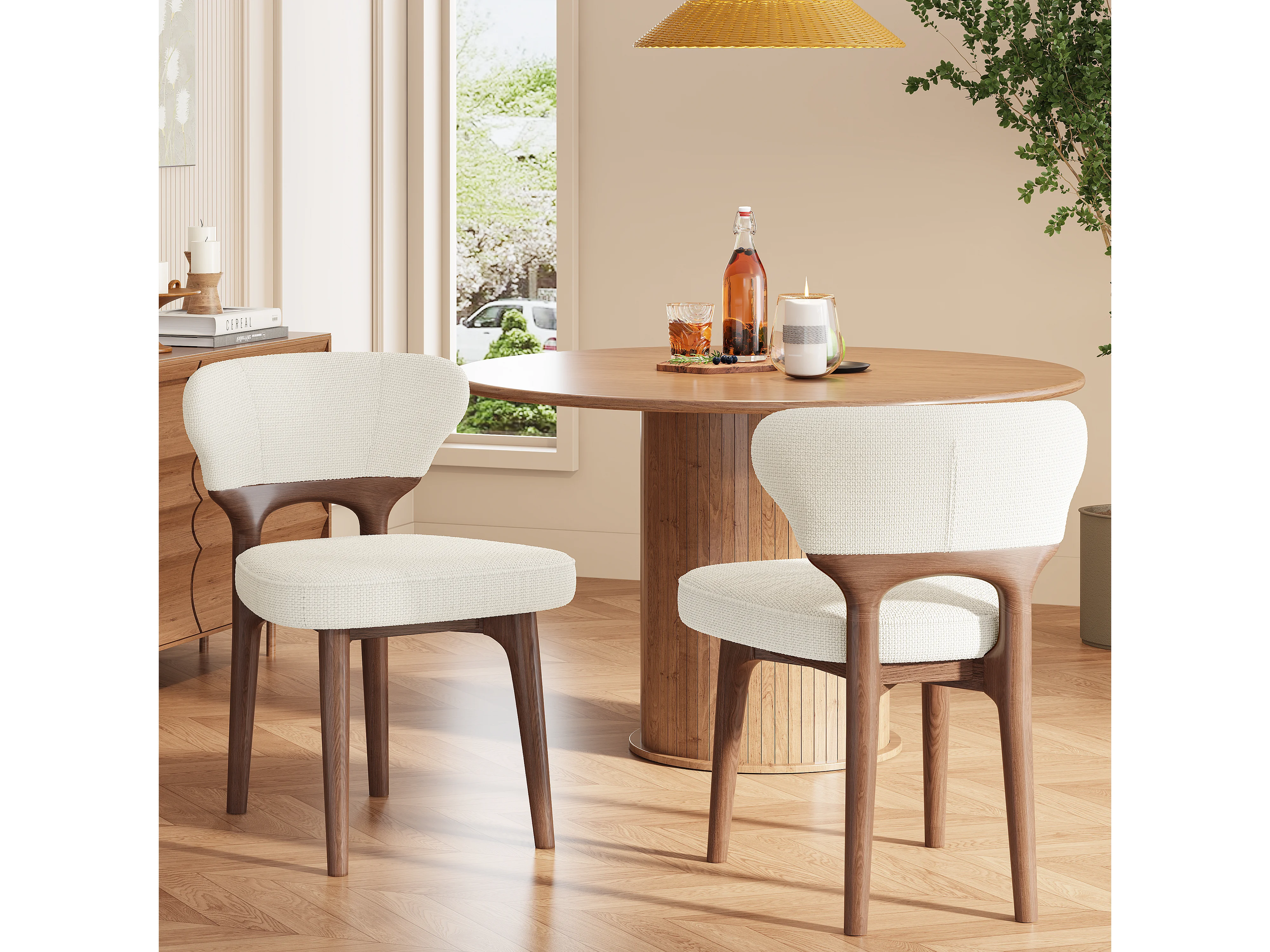 Set van 4 massief houten eetkamerstoelen - 53 x 58,5 x 75 cm - Moderne stijl - fluweel - beige
