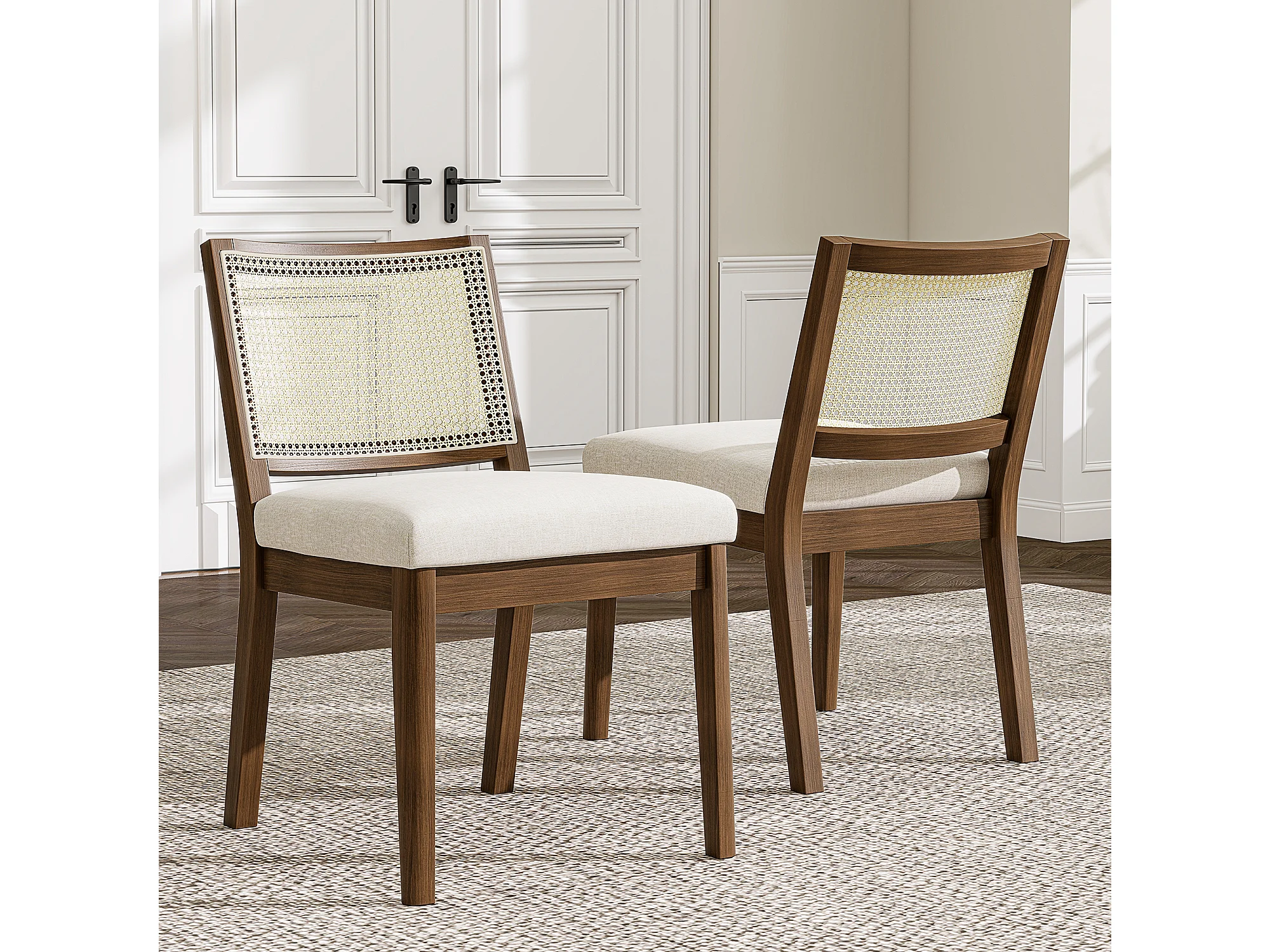 Set van 4 massief houten eetkamerstoelen met rotan rugleuningen - 48 x 61 x 78,5 cm - Moderne stijl - linnen - bruin