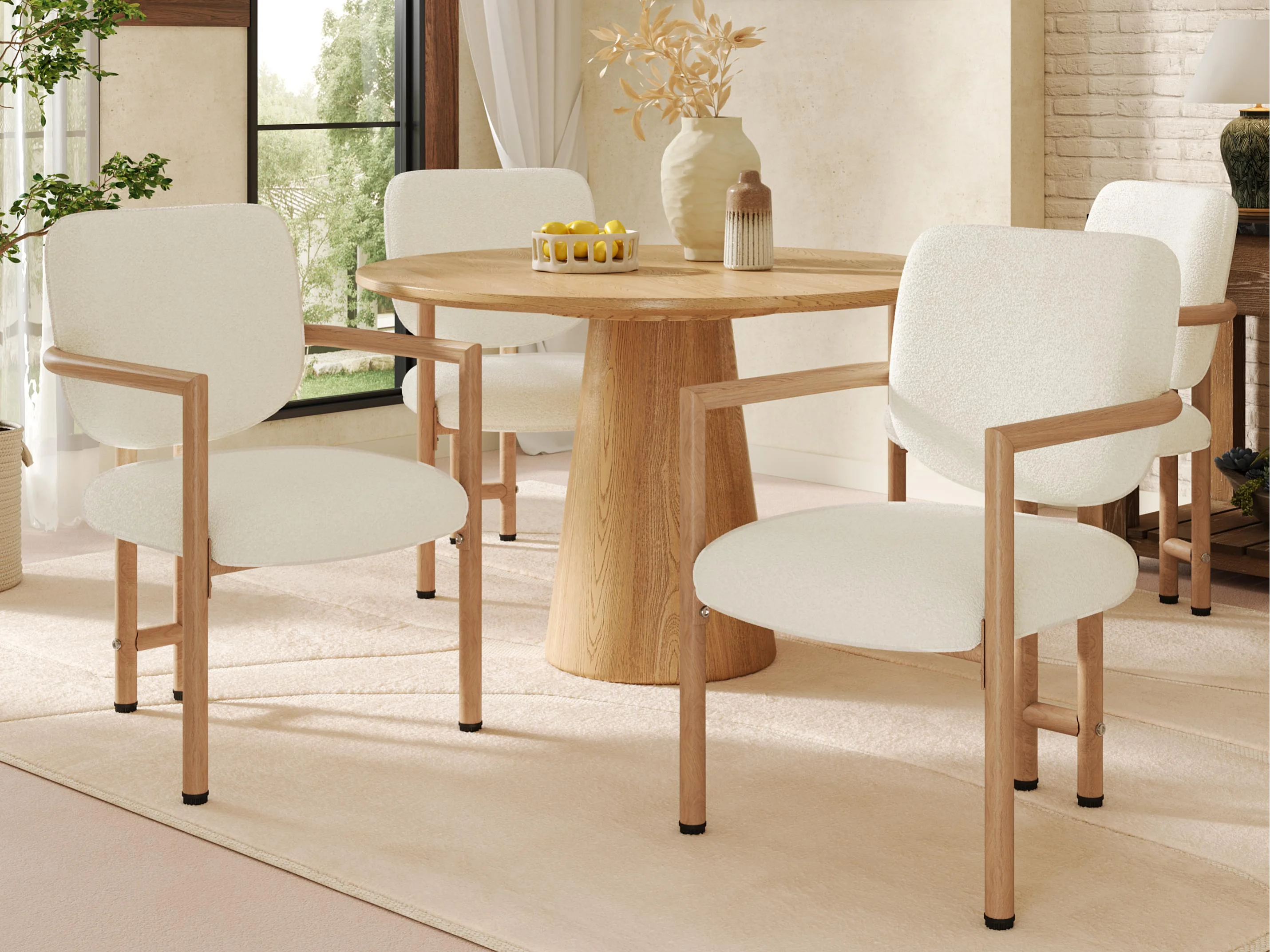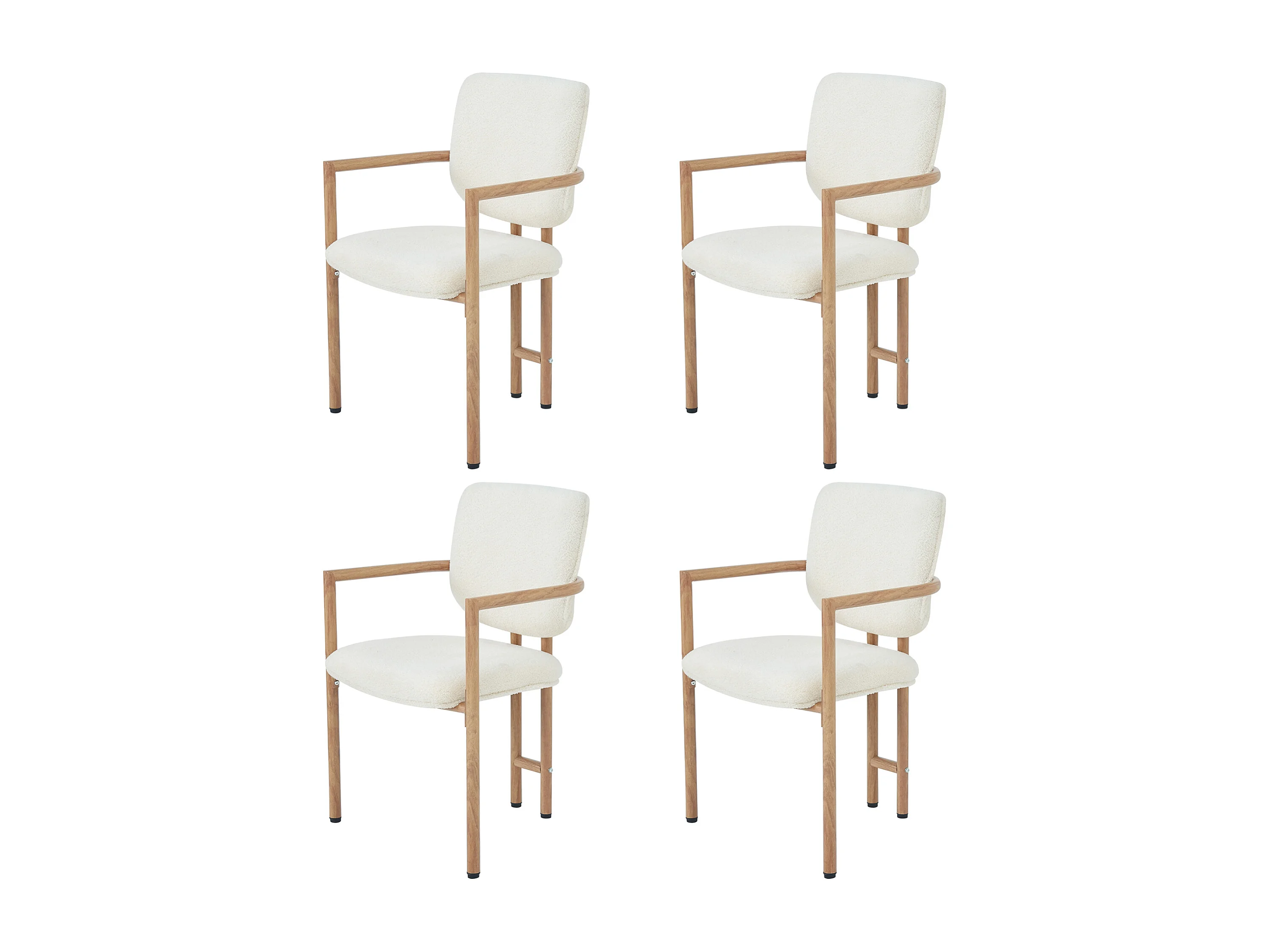 Set van 4 metalen stoelen in houtlook - Met armleuningen - Metalen frame - Bouclé stof beige - Natuurlijke kleur