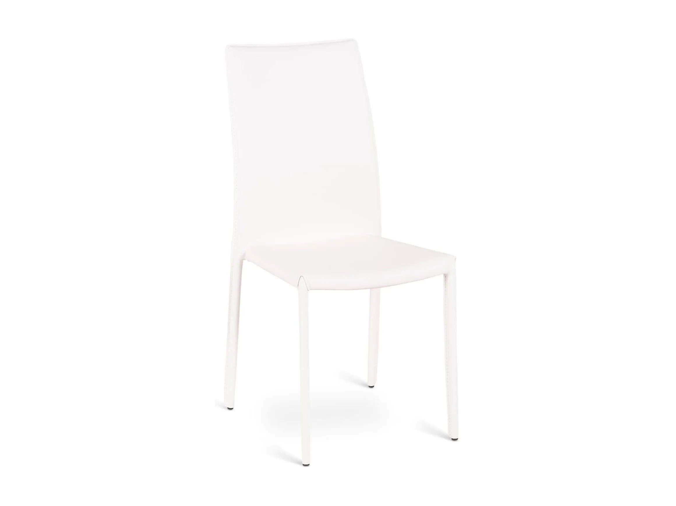 Set van 4 stapelbare vintage "Fiordaliso" witte imitatieleren eetkamerstoelen, 41x42 cm, 95 cm hoog.