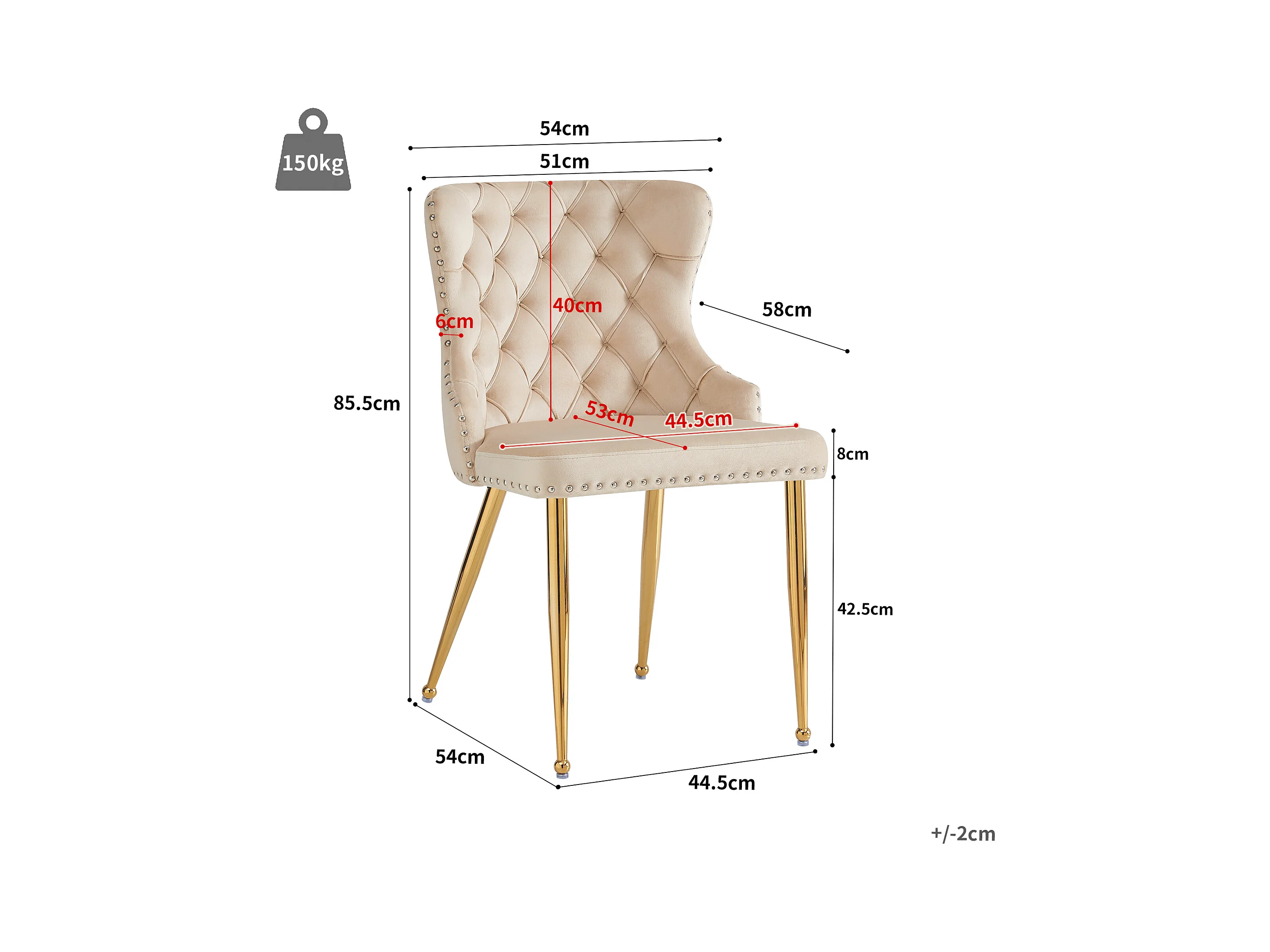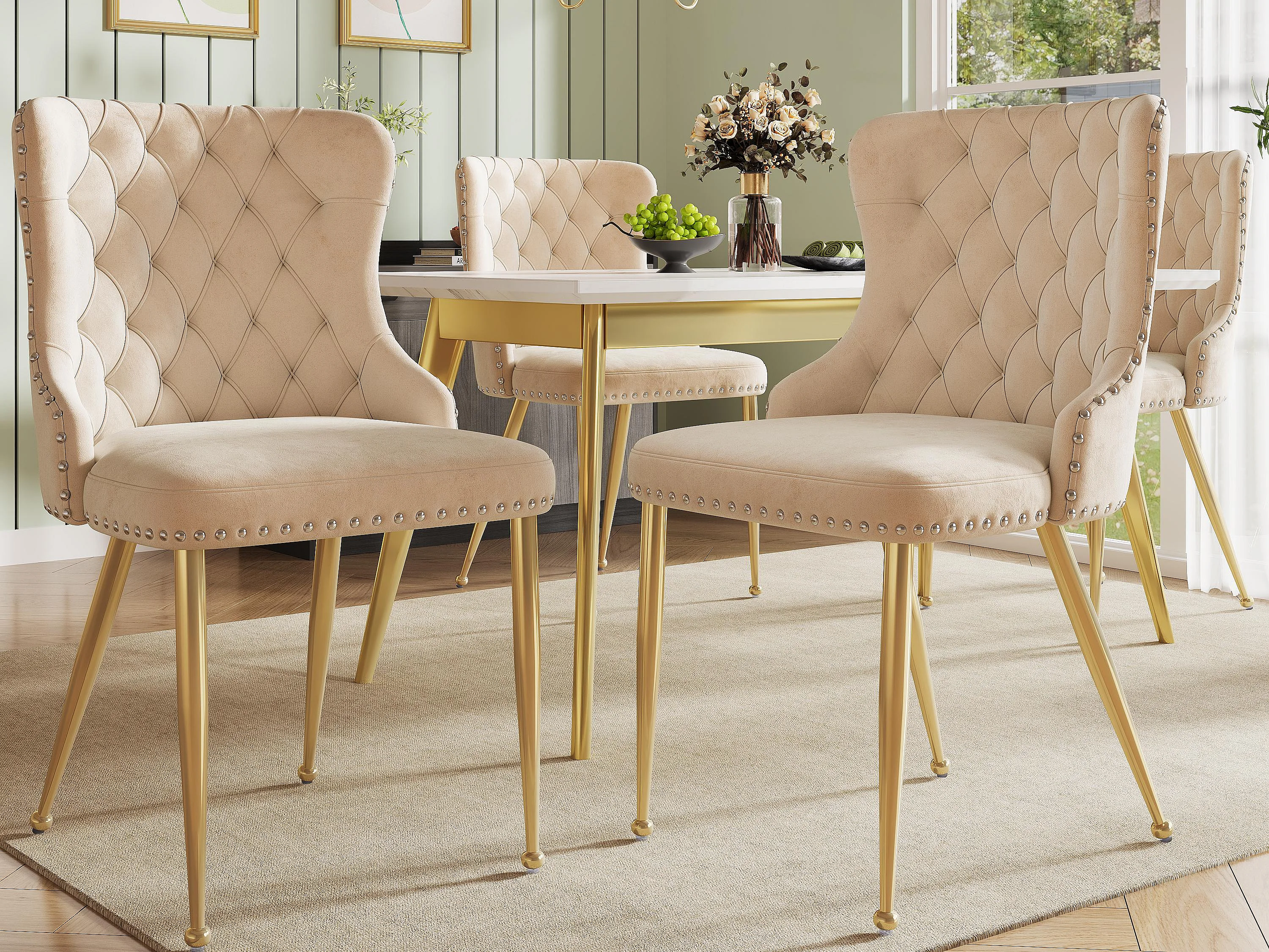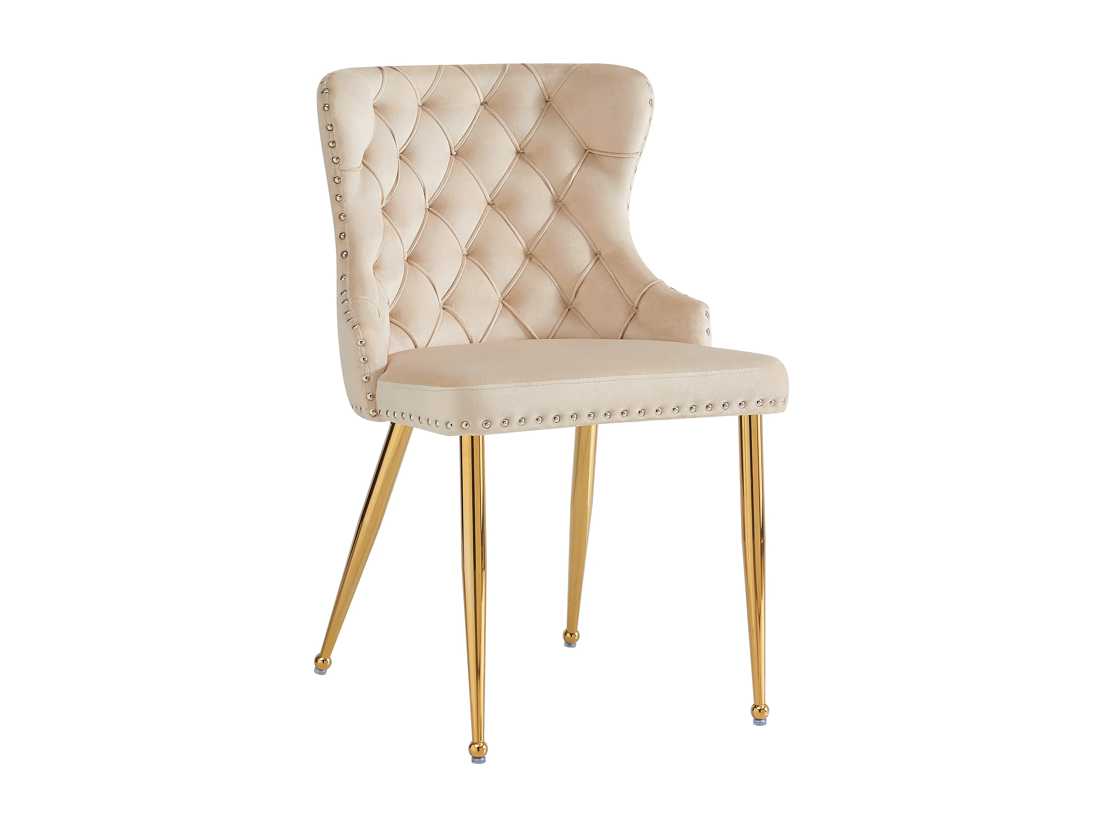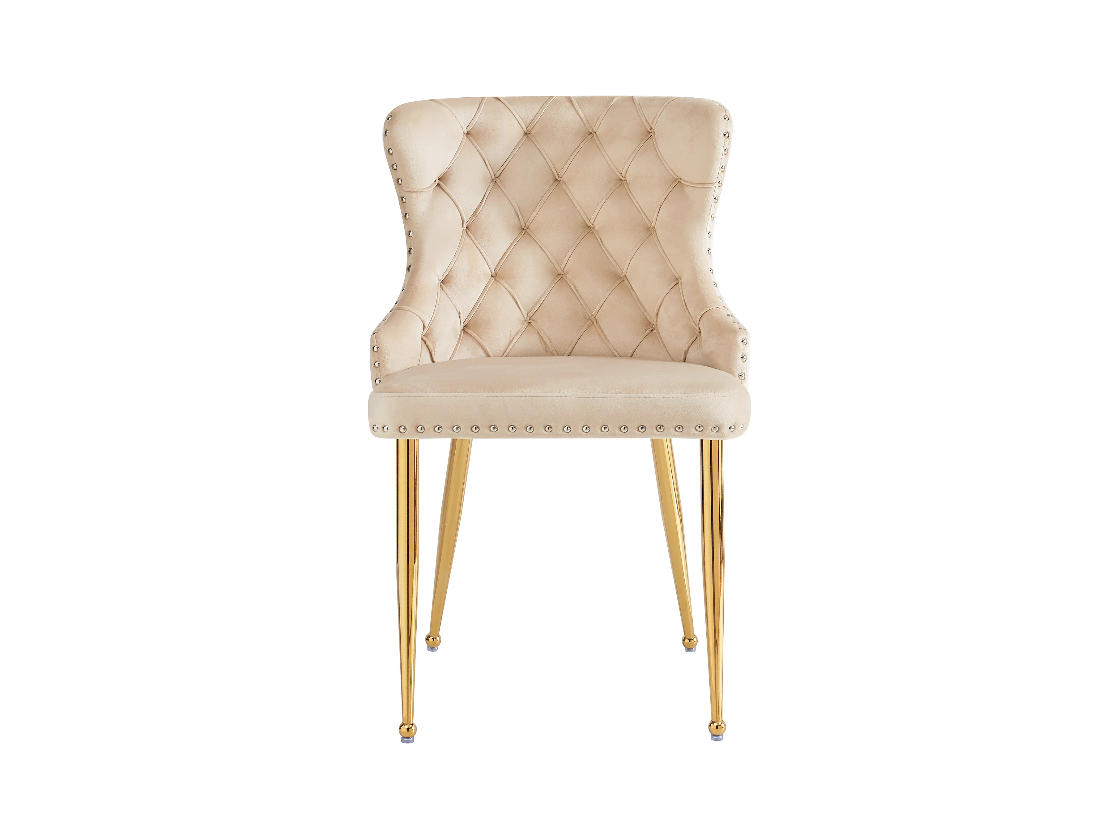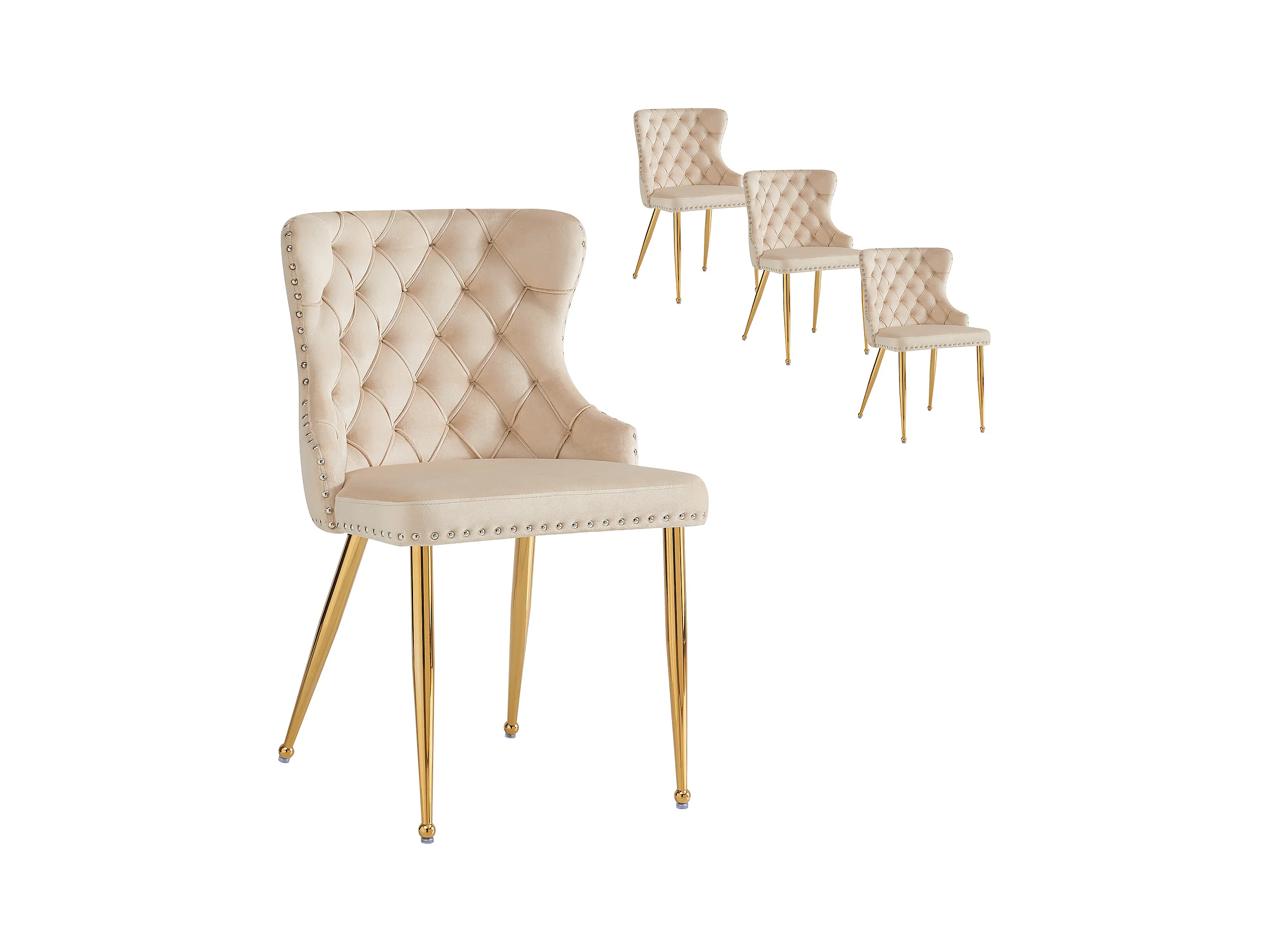 Set van 4 stoelen - Hoogwaardig fluweel - Goudkleurige metalen poten - Beige