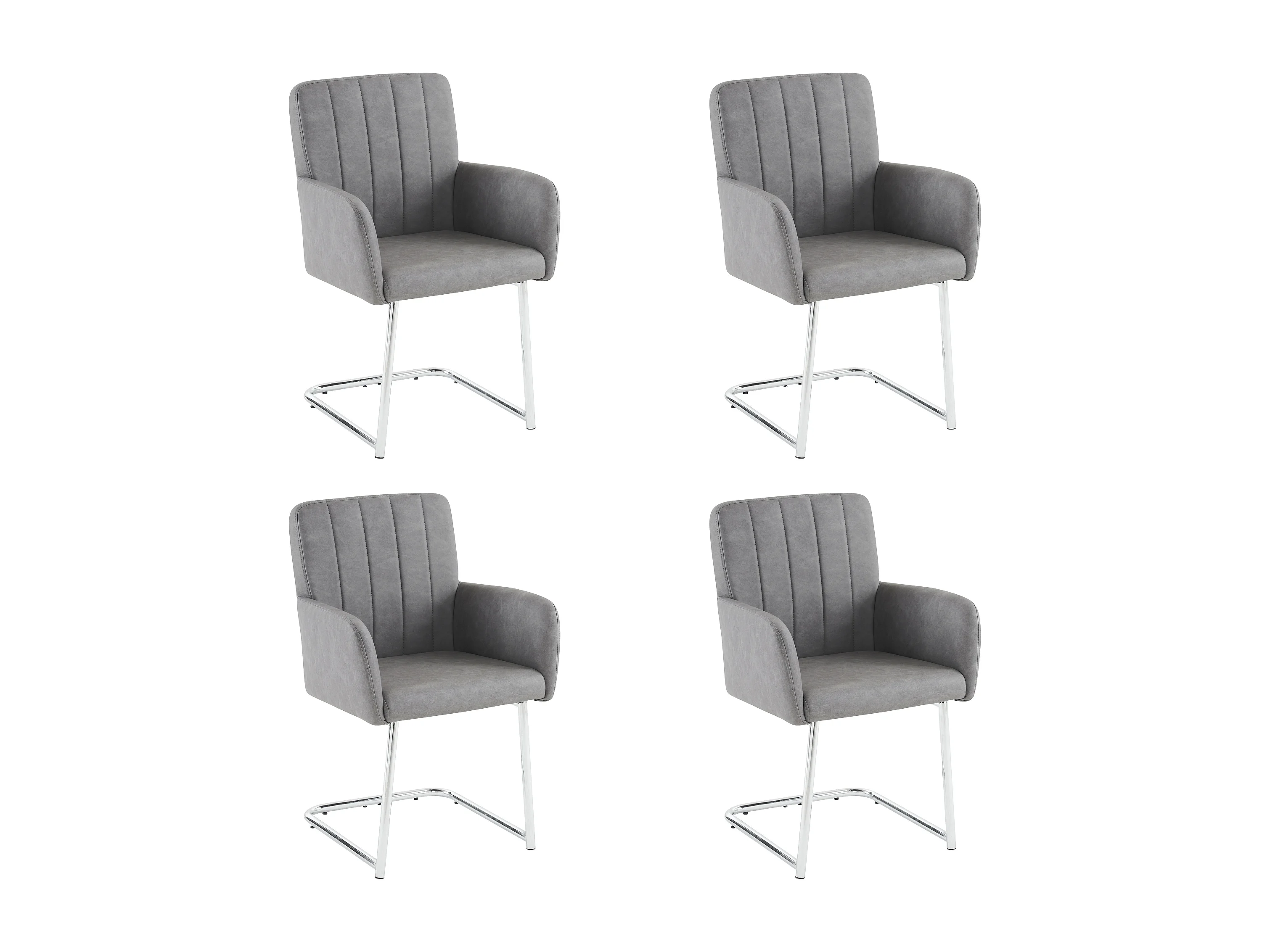 Set van 4 stoelen in grijs PU-leer - Metalen poten - Verticale strepen