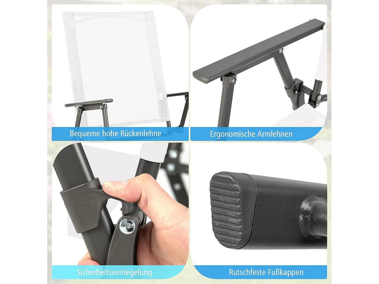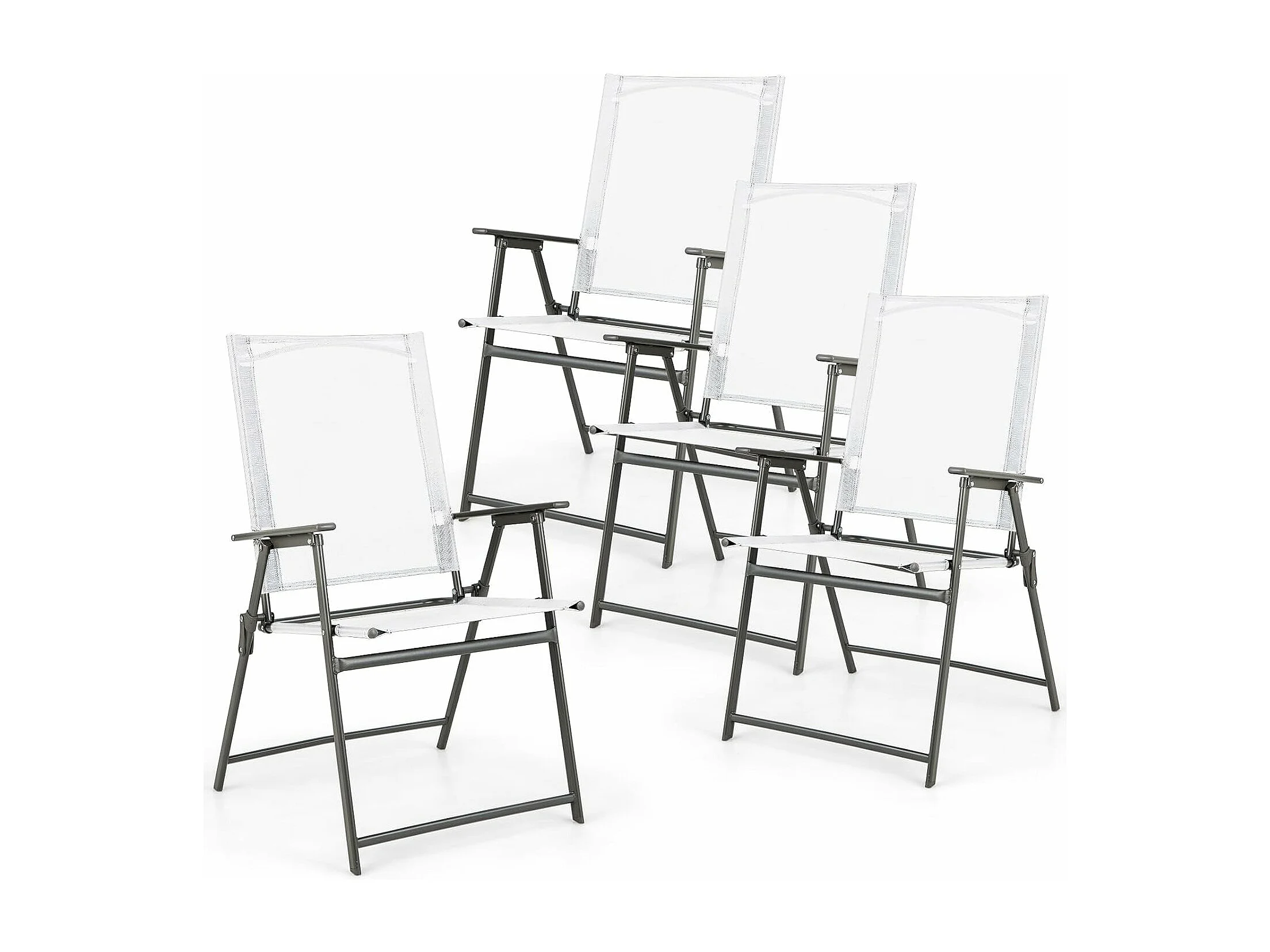 Set van 4 tuinstoelen, klapstoelen met weerbestendige stof, balkonstoelen met armleuningen, terrasstoelen voor tuin, terras, balkon (wit) ZB33246