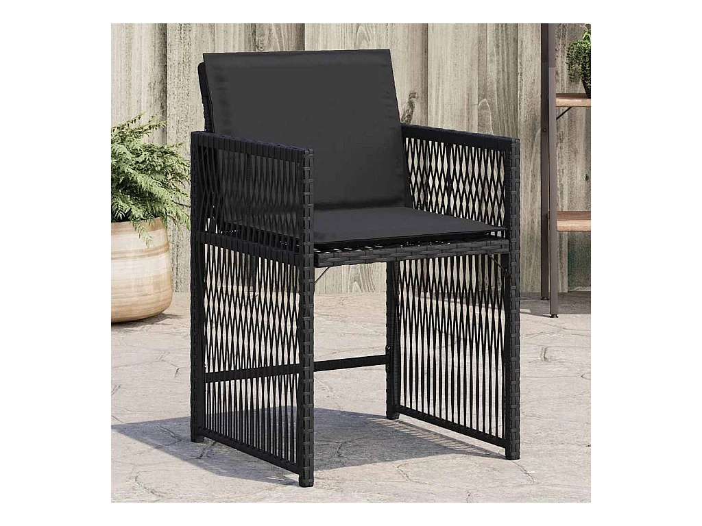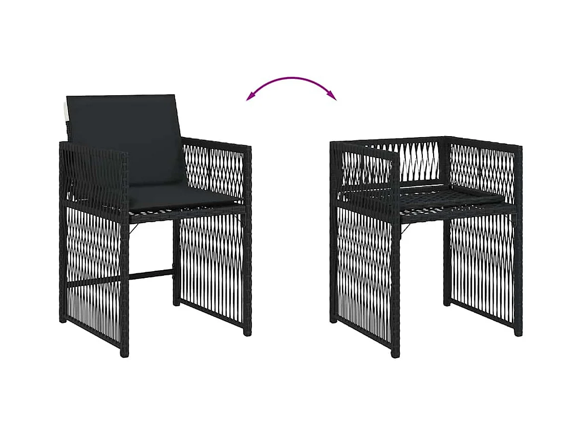 Set van 4 tuinstoelen met zwarte rieten kussens