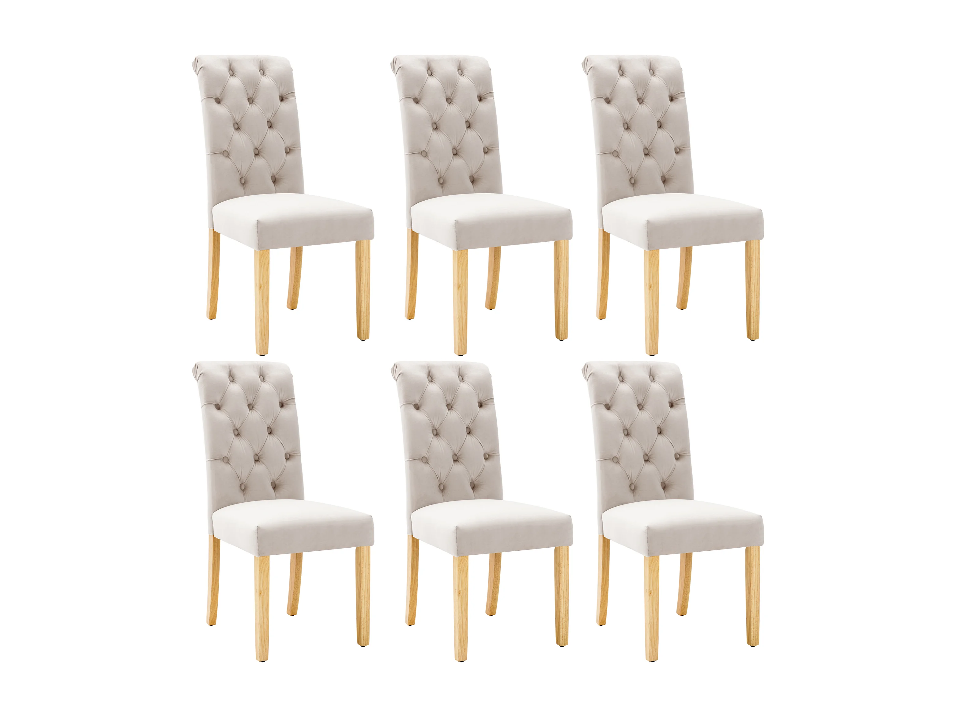 Set van 6 beige fluwelen stoelen met een 54 cm hoge rugleuning - Eikenhouten poten