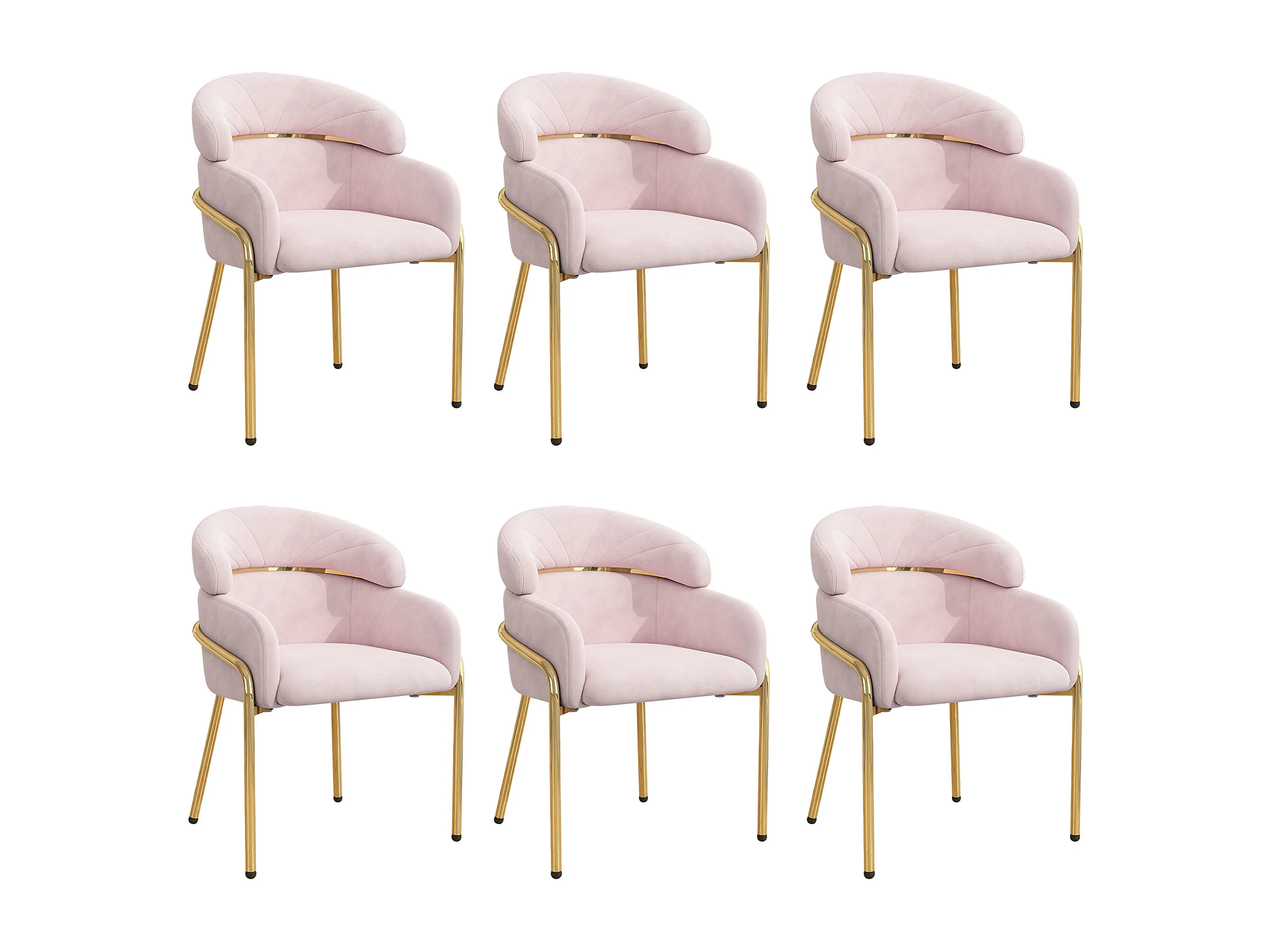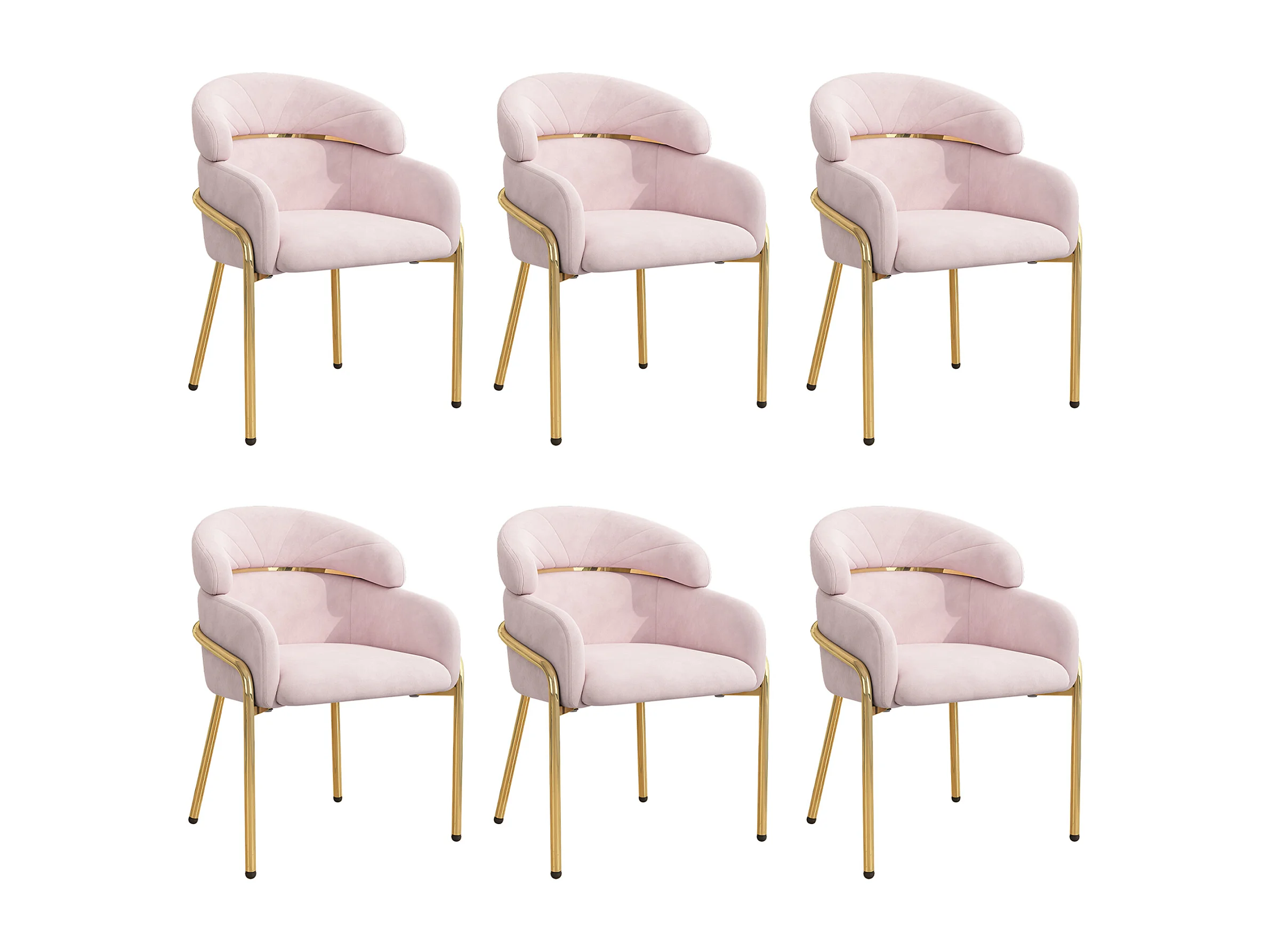 Set van 6 eetkamerstoelen - 45x53x79cm - metal poten - Fluweel stof - Roze
