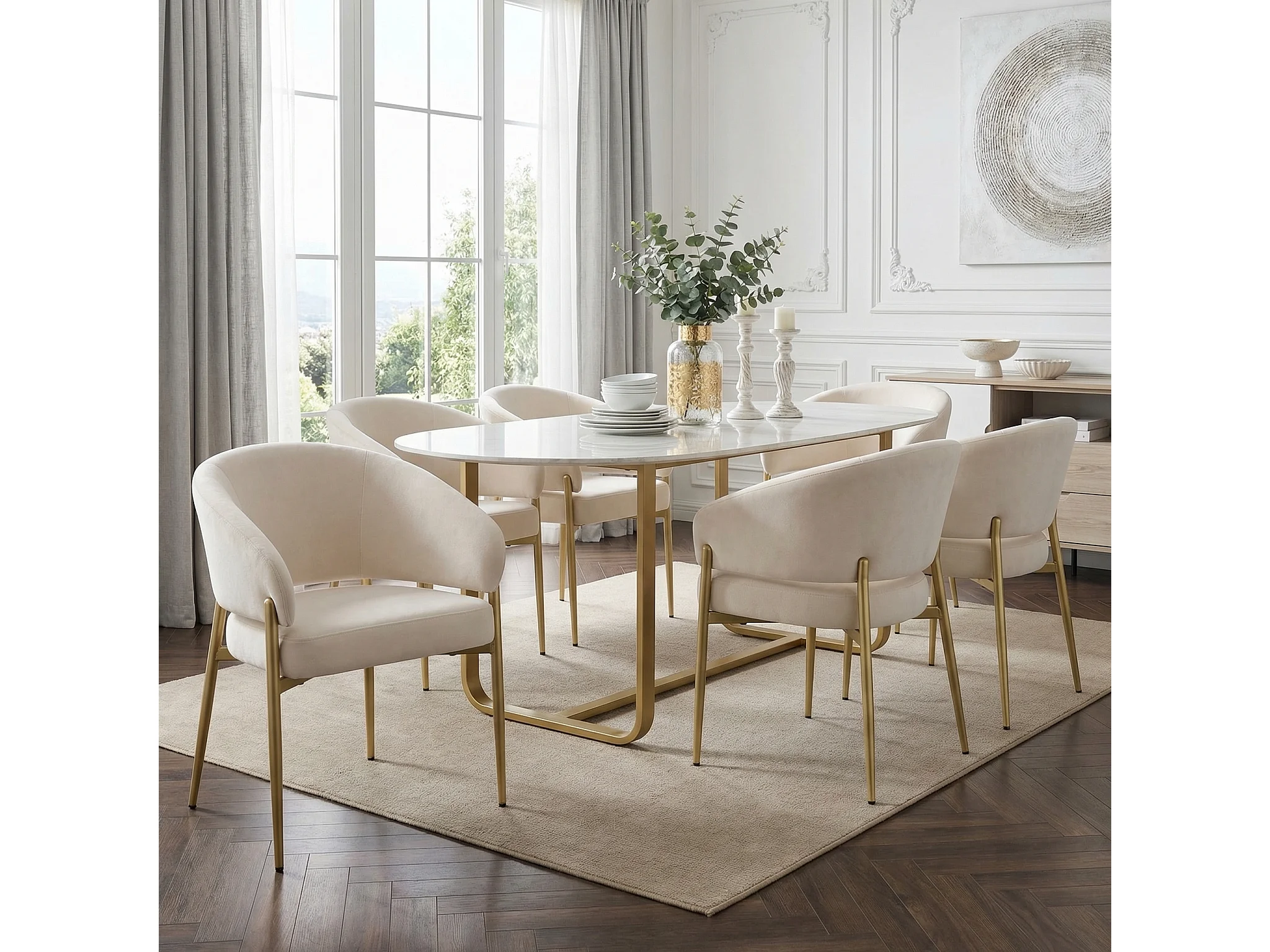 Set van 6 eetkamerstoelen - 58 x 61 x 78 cm - Moderne stijl - gouden poten - fluweel - beige