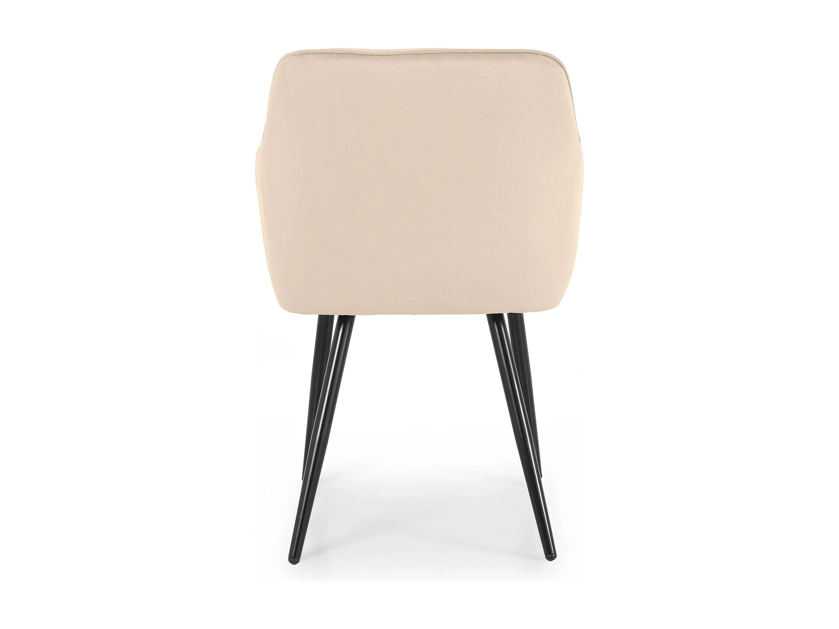 Set van 6 Eetkamerstoelen DIAMANTE met Armleuningen / Gestoffeerde Stoelen / Fluwelen Stoelen en Metalen Poten / Beige met zwarte benen
