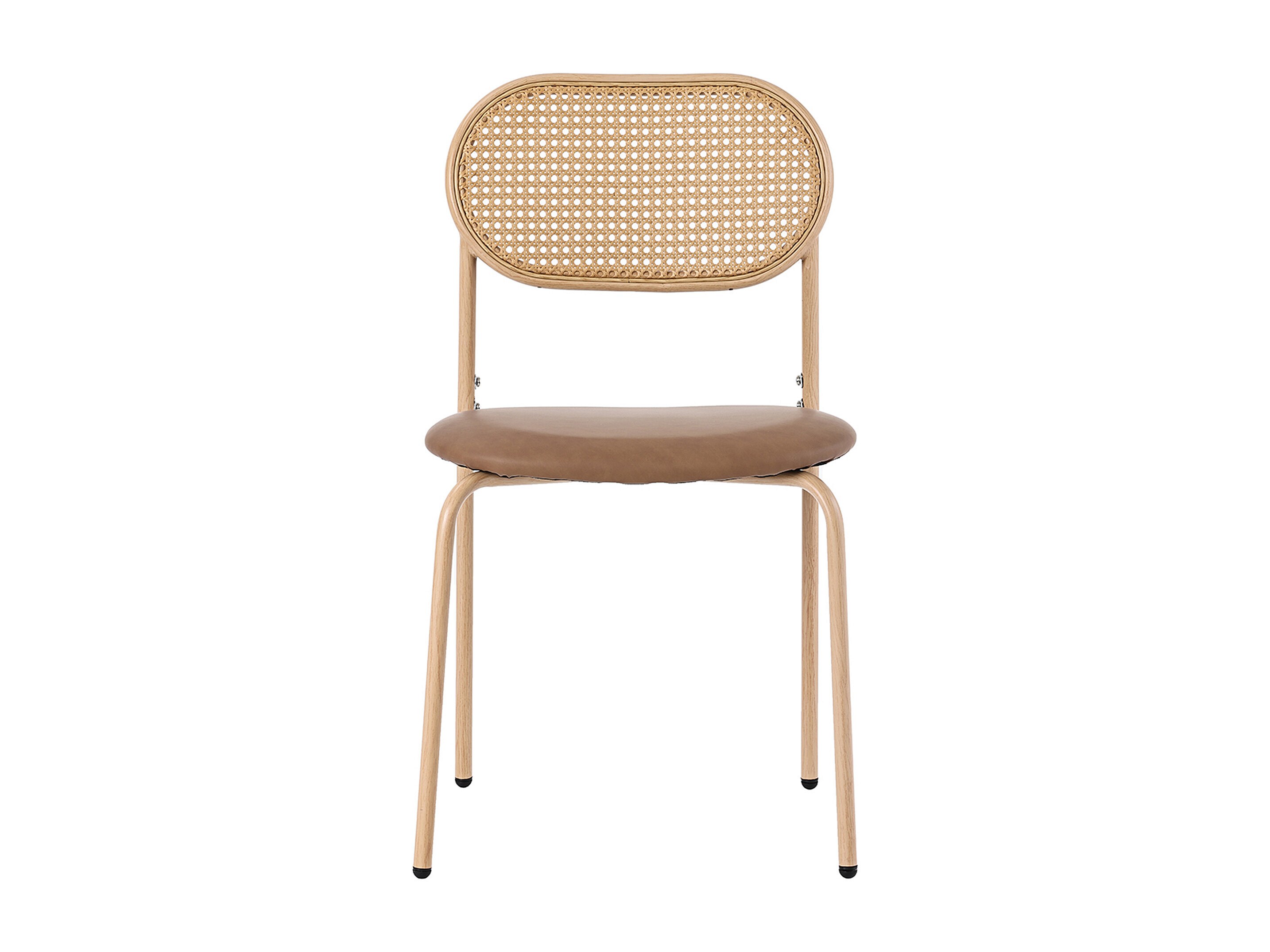 Eetkamerstoel van kunstleer (4 stuks), rotan loungestoel, retro ergonomische stoel met metalen poten (61x46x79 cm)