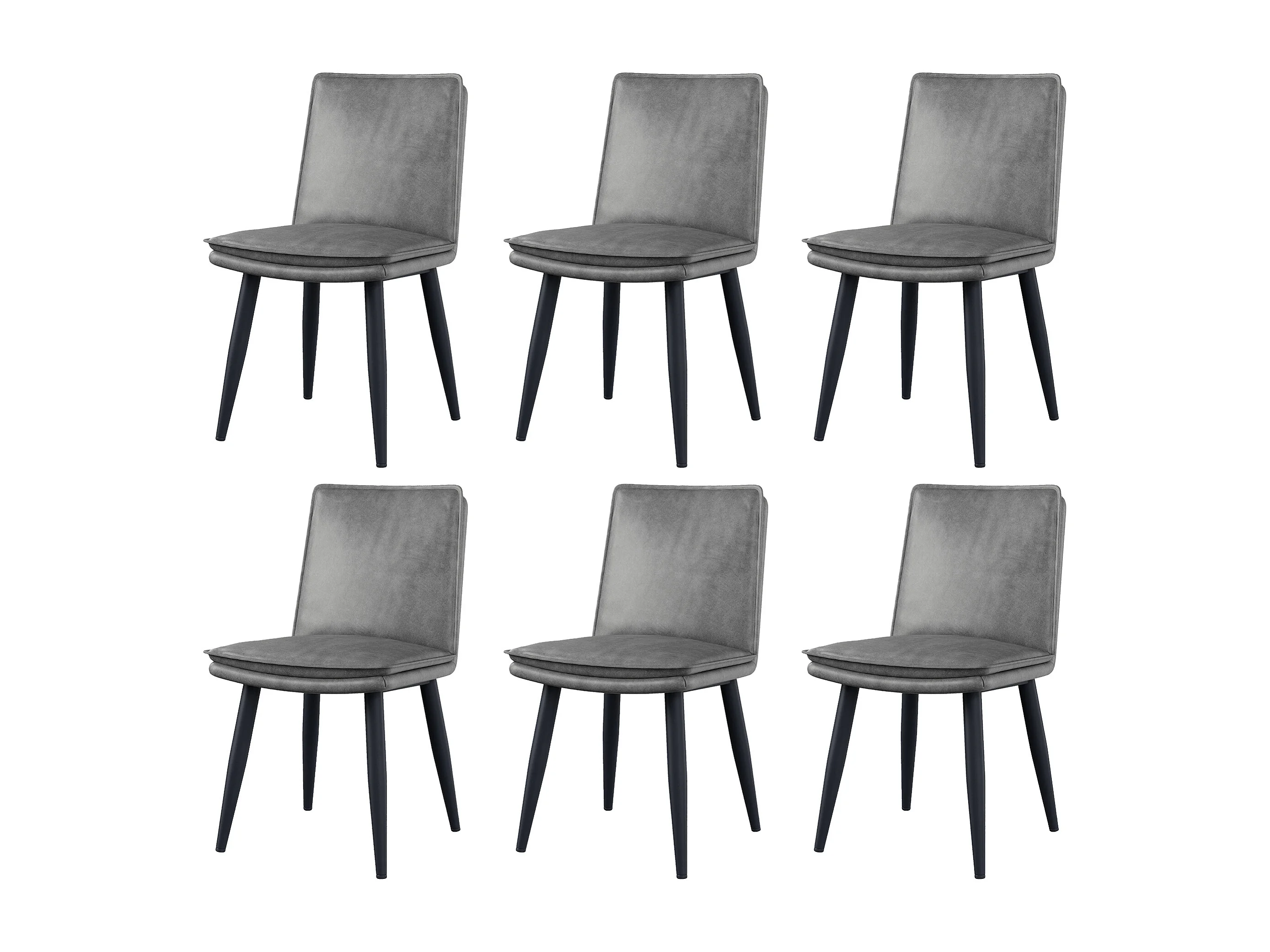 Set van 6 eetkamerstoelen, grijs PU, dubbellaags gevoerde zittingen - voor eetkamers en woonkamers