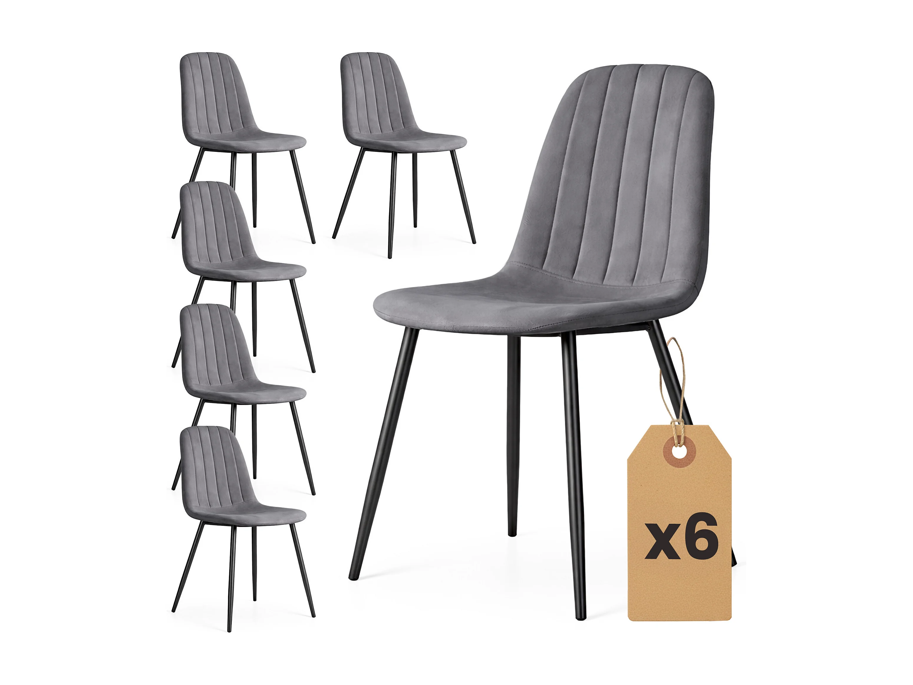Set van 6 Eetkamerstoelen LUMO / Gestoffeerde Stoelen / Fluwelen Stoelen en Metalen Poten / Antraciet met zwarte benen