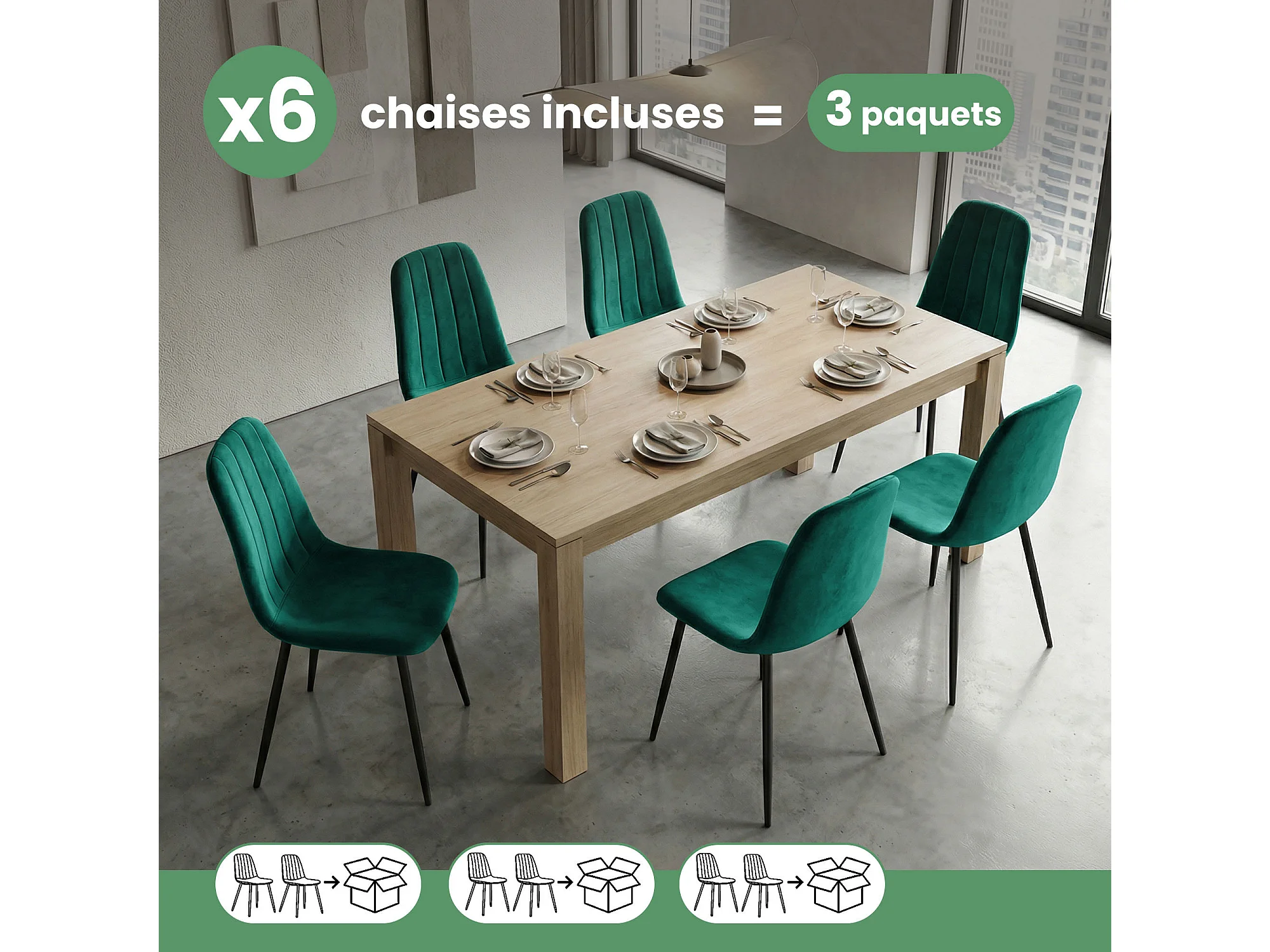 Set van 6 Eetkamerstoelen LUMO / Gestoffeerde Stoelen / Fluwelen Stoelen en Metalen Poten / Flesgroen met zwarte benen
