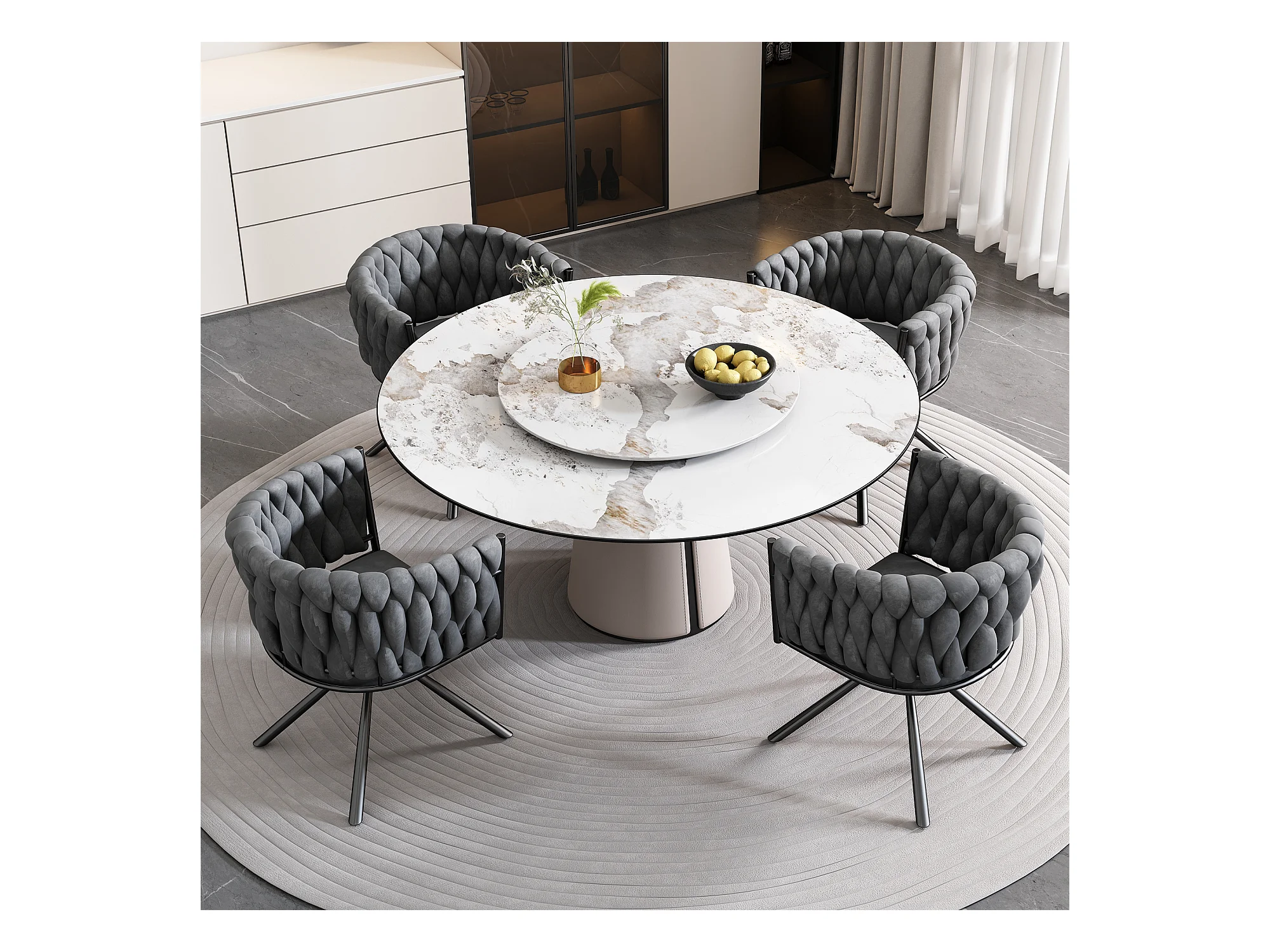 6Stks Draaistoel van fluweel, met armleuningen en metalen poten, ruime rugleuning, Grijs, 63x50x87cm