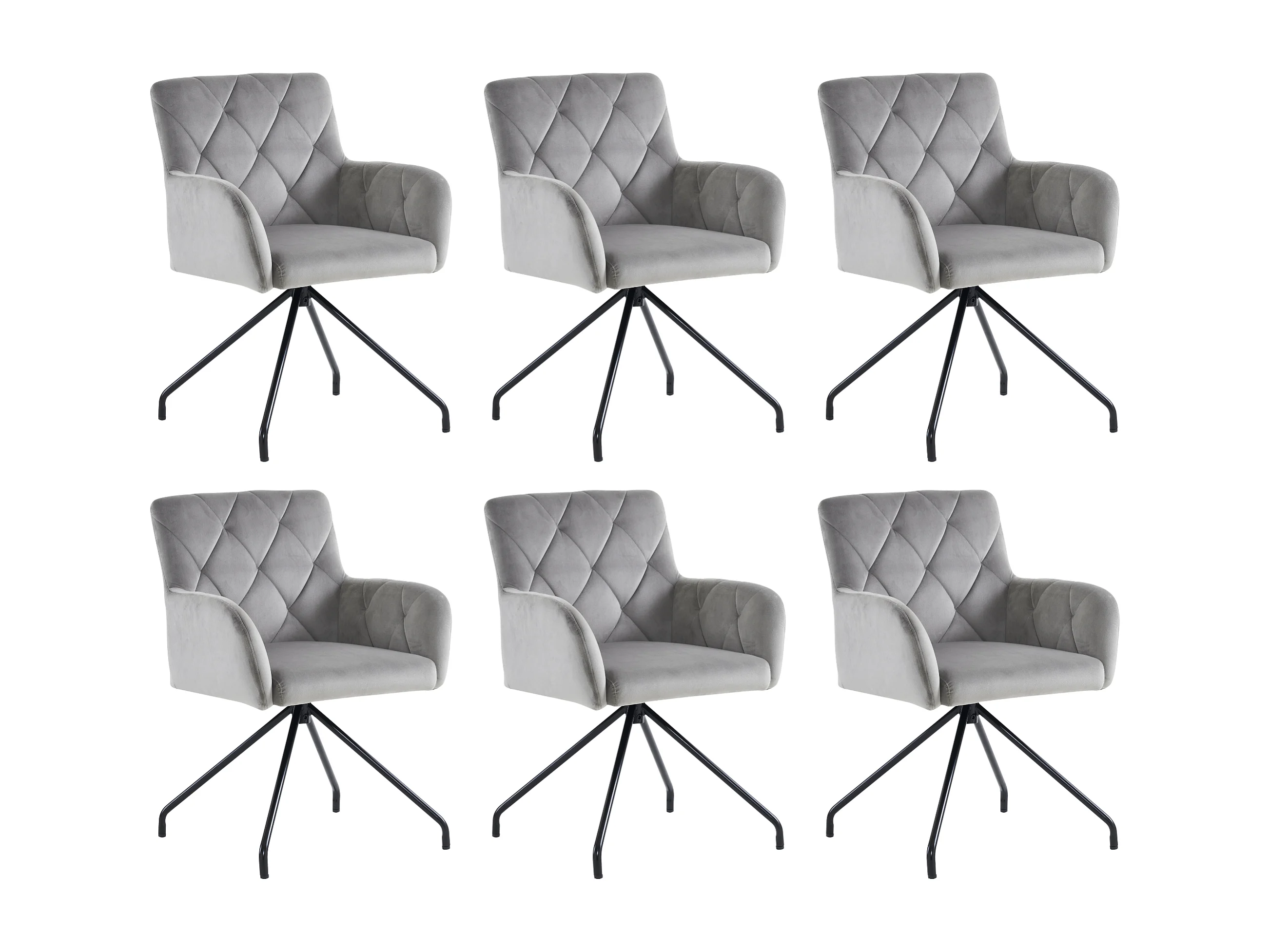 Set van 6 fluwelen eetkamerstoelen - 85 x 49 x 49 cm - Gestoffeerde fauteuil met 4 metalen poten - met lendensteun - Grijs