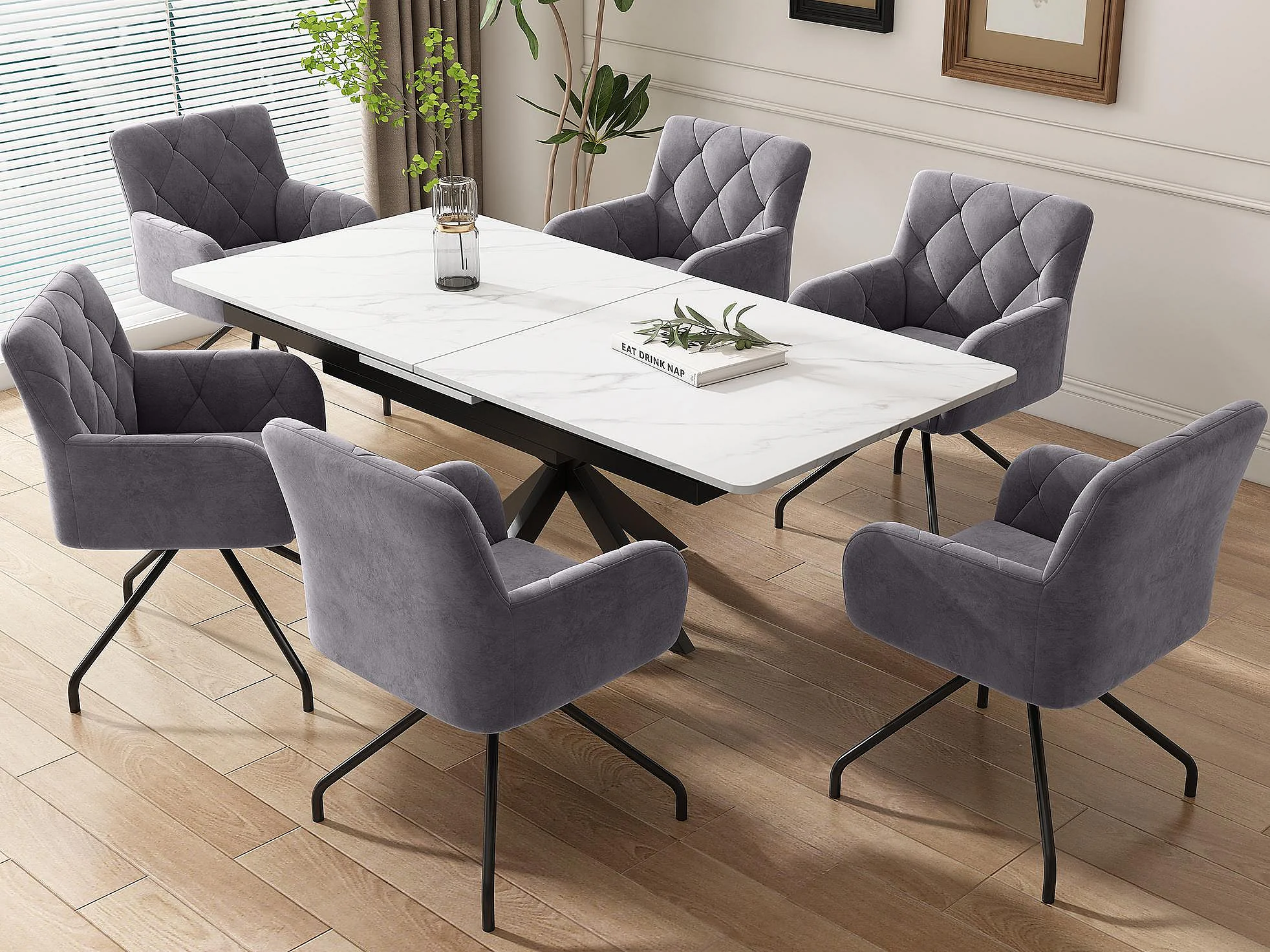 Set van 6 fluwelen gestoffeerde stoelen met metalen poten - grijs