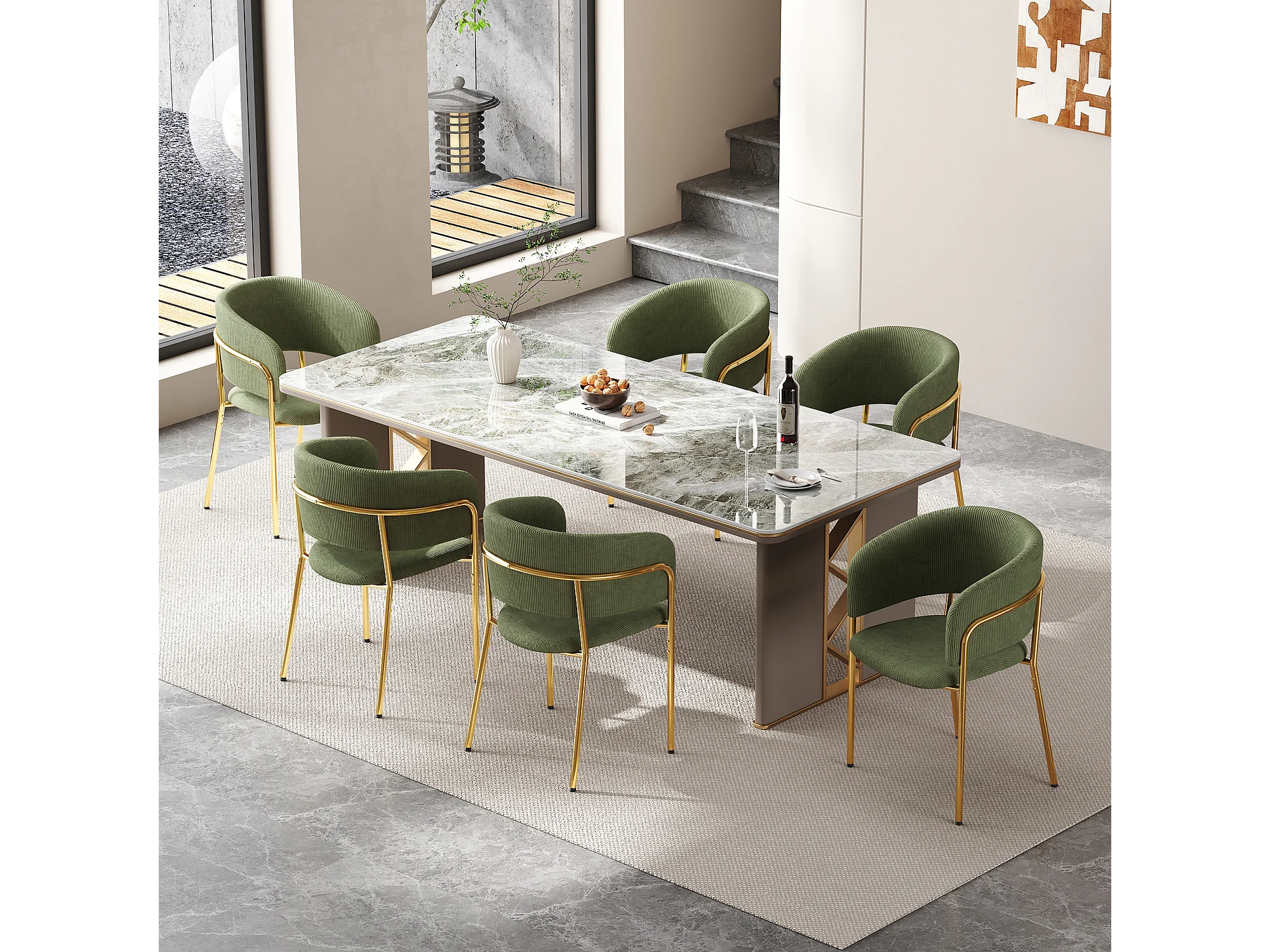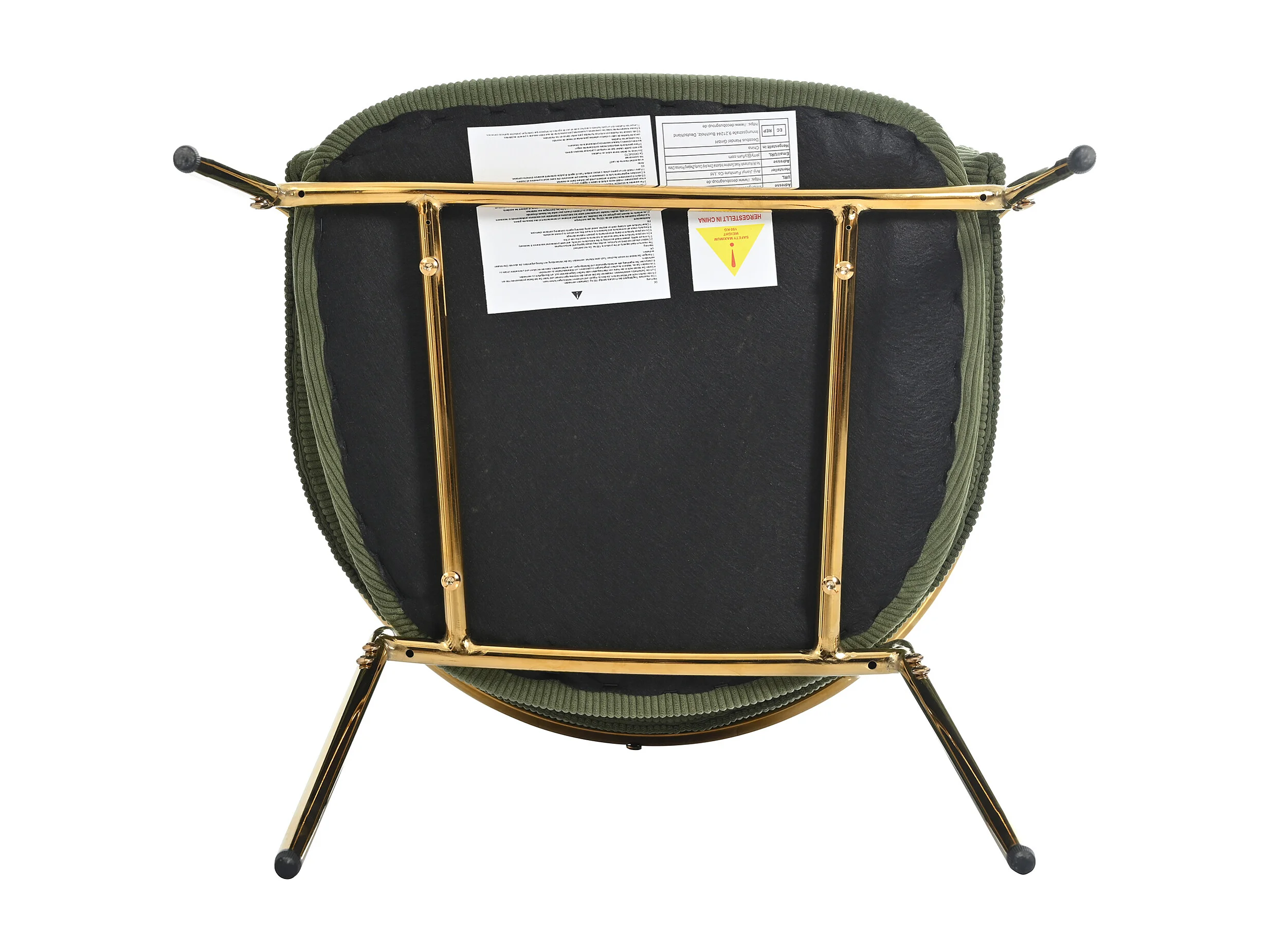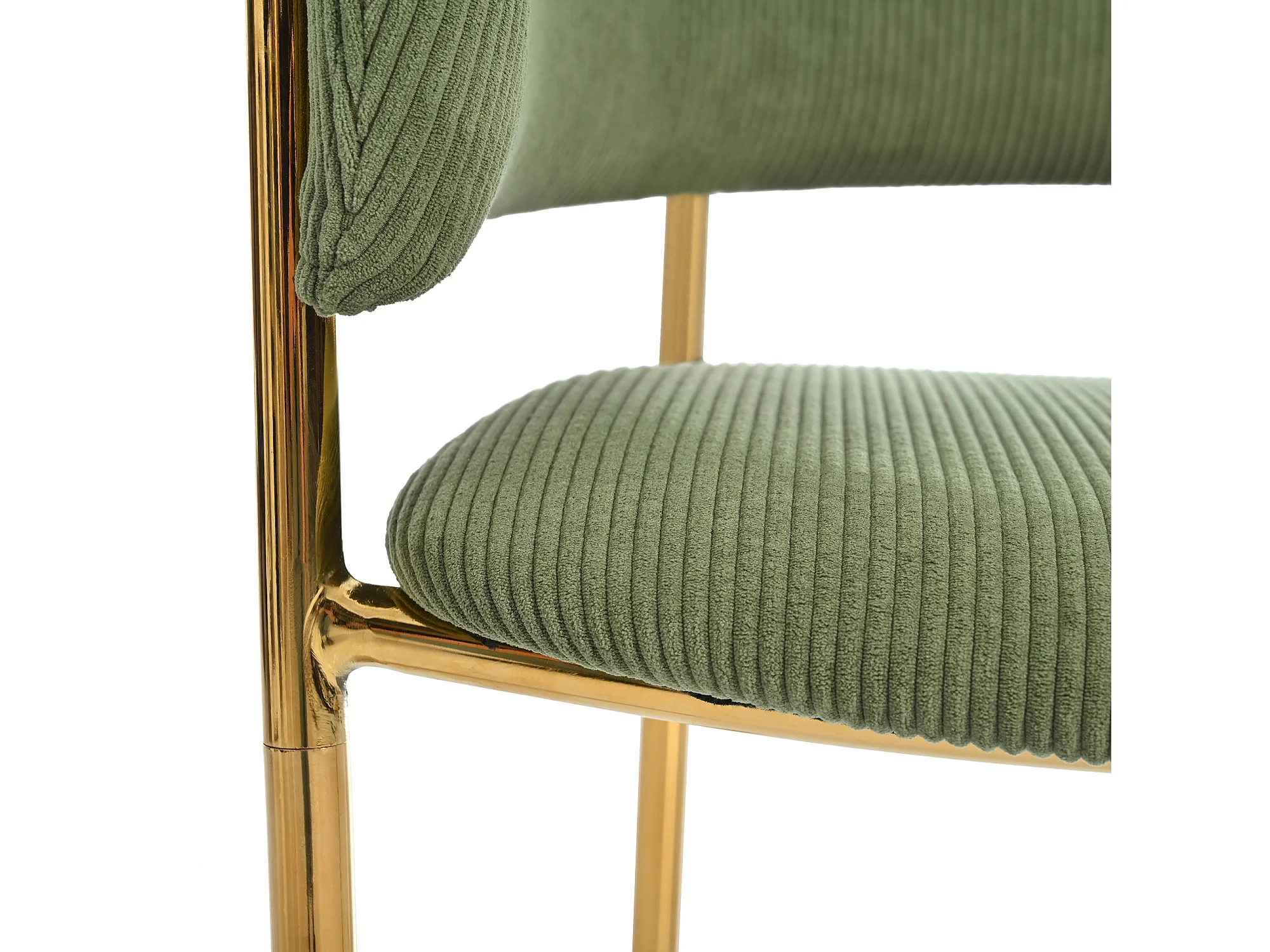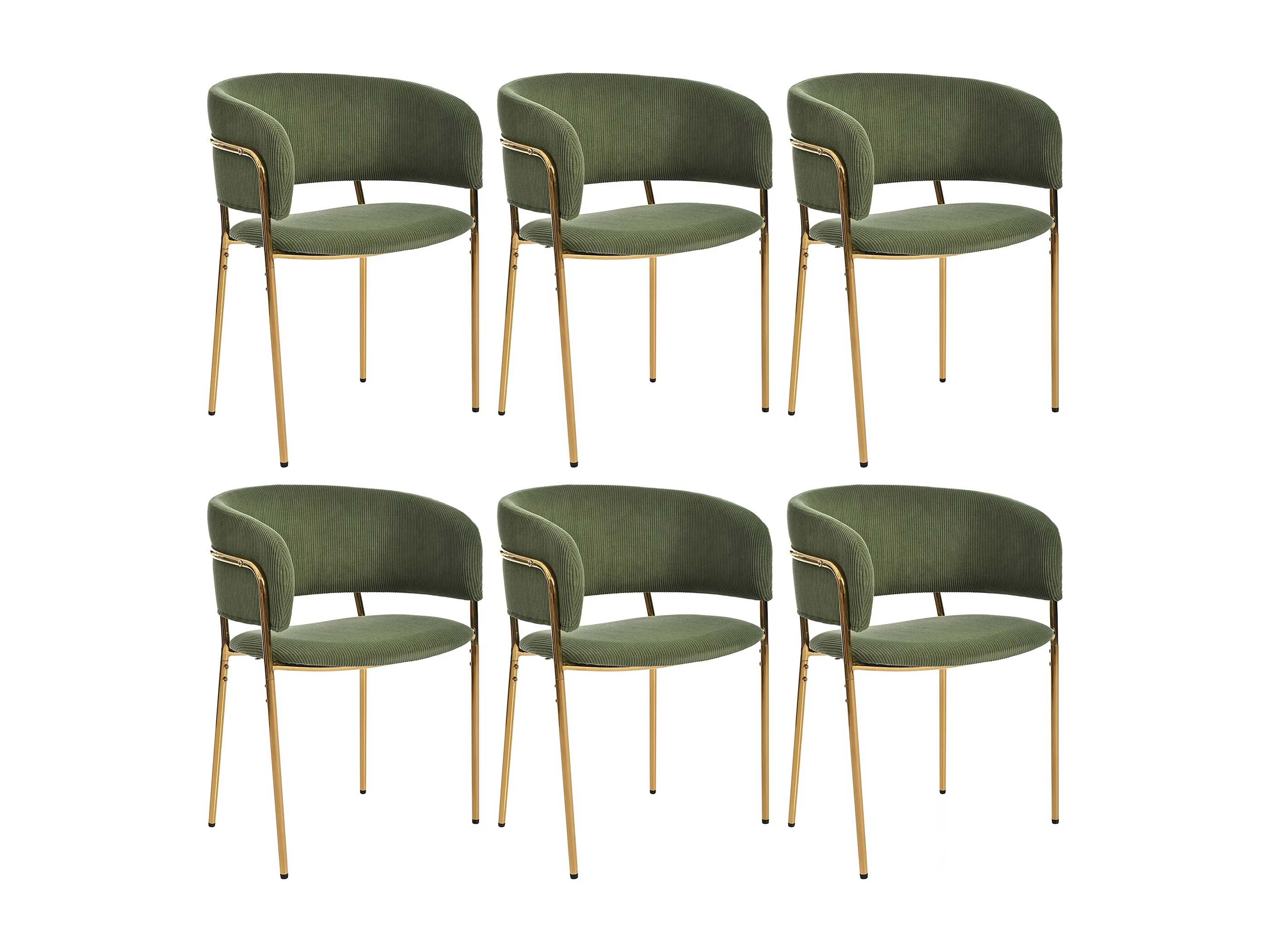 Set van 6 groene corduroy stoelen, goudkleurig ijzeren frame