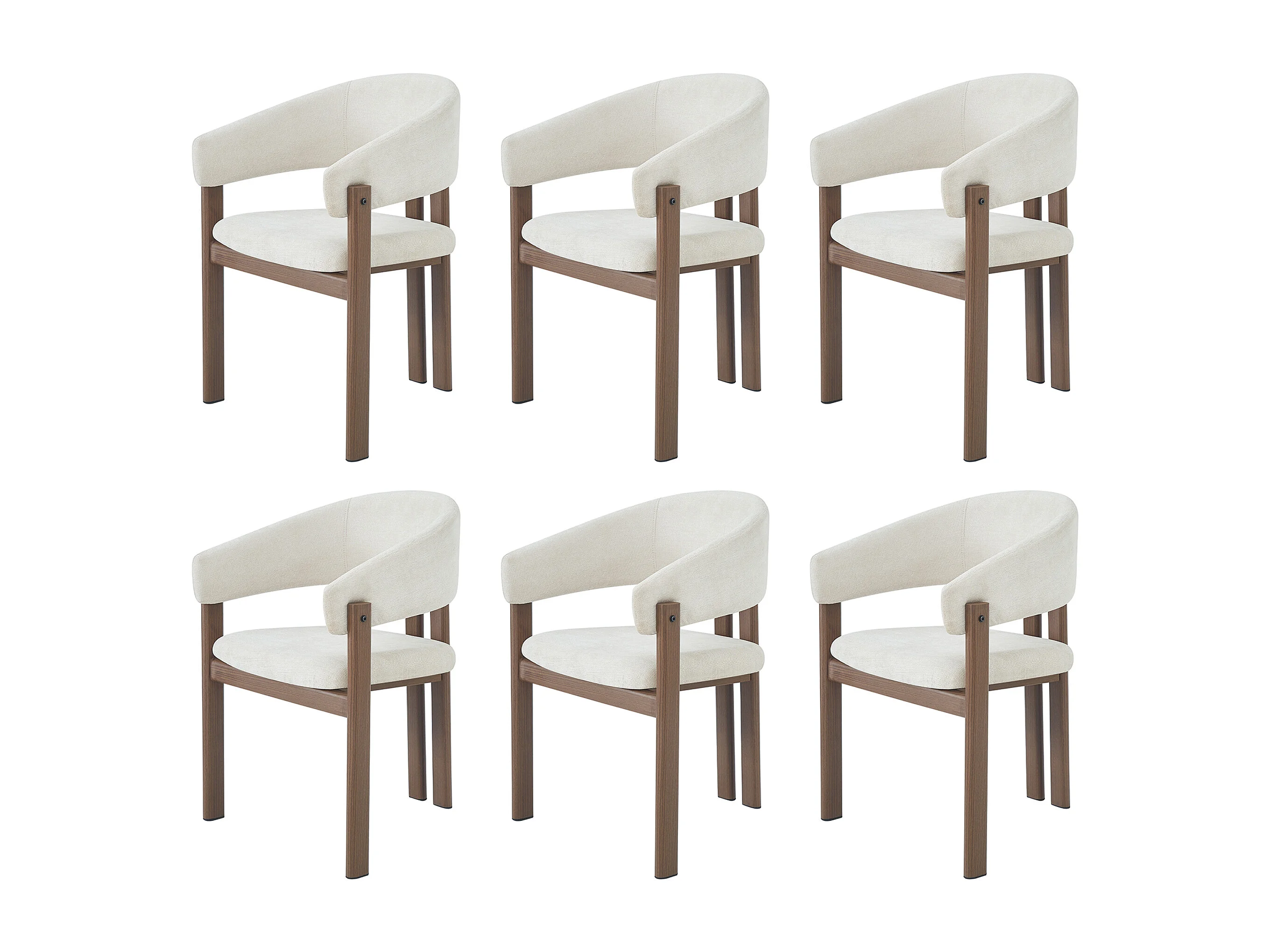 Set van 6 metalen eetkamerstoelen met houtlook - 61,5 x 52,5 x 83 cm - moderne stijl - linnen bekleding - beige + bruin