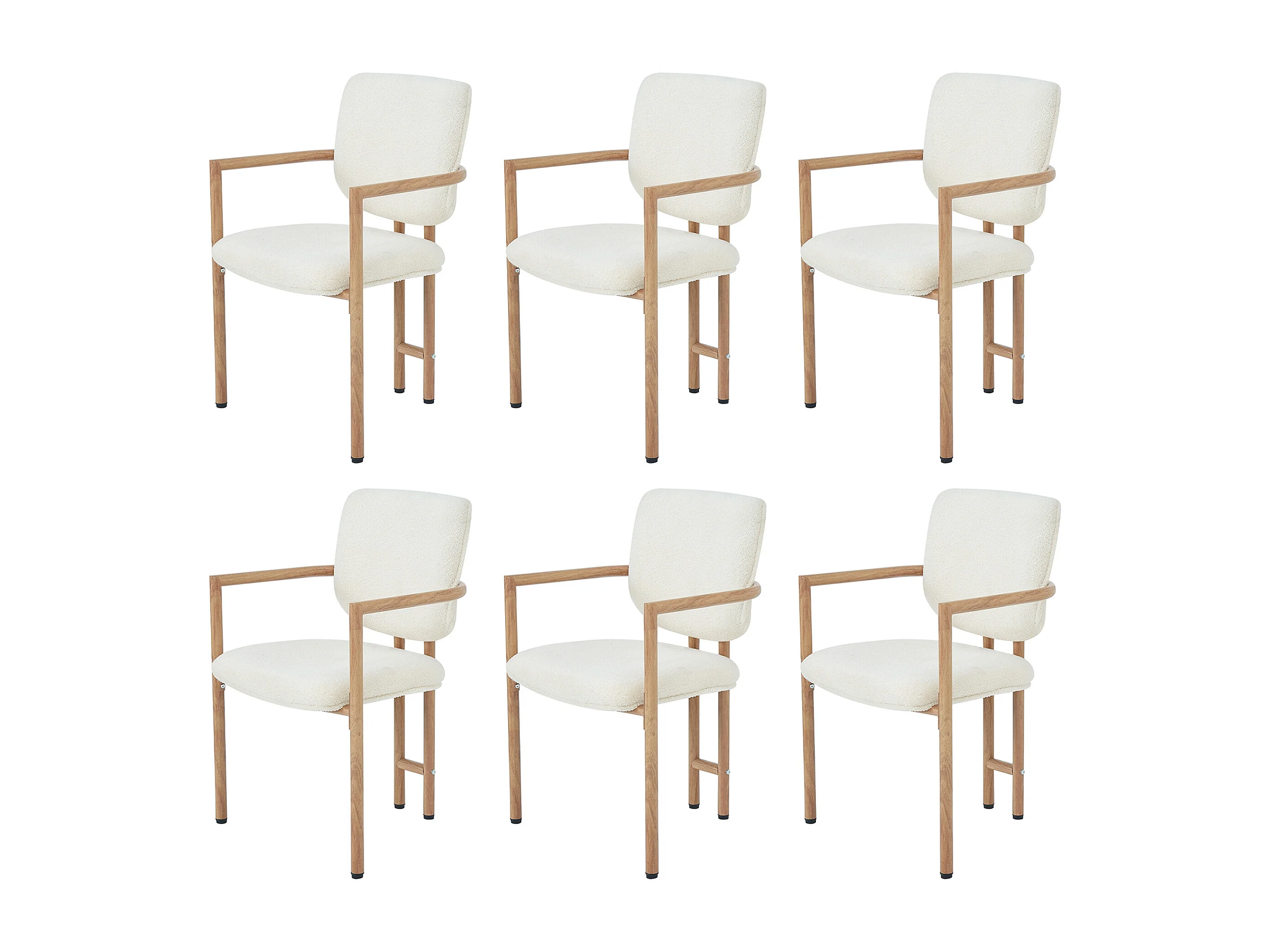 Set van 6 metalen stoelen in houtlook - Met armleuningen - Metalen frame - Bouclé stof beige - Natuurlijke kleur
