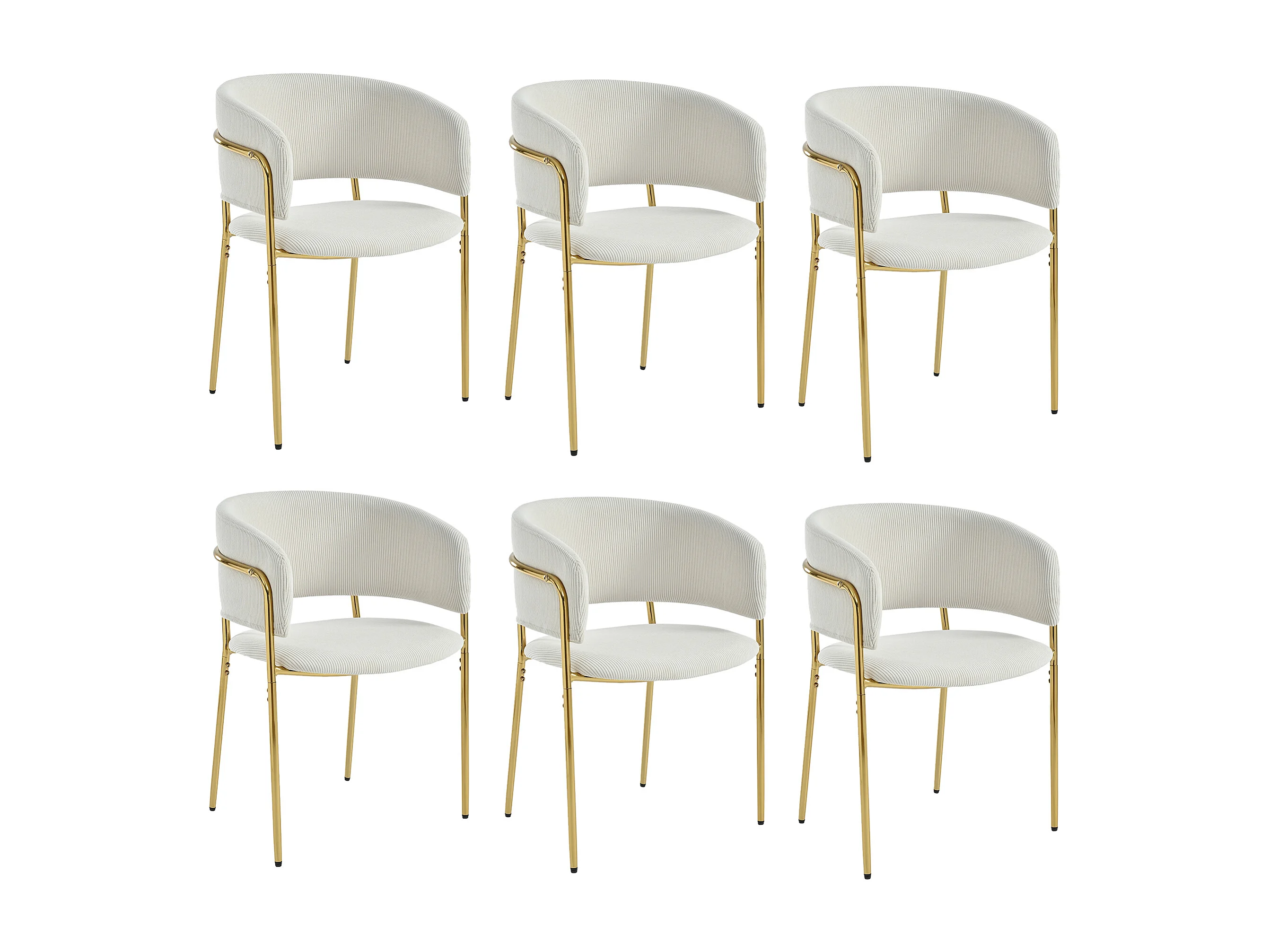 Set van 6 moderne stoelen met schuine poten - 55 x 55 x 80 cm - gouden poten - voor de woonkamer en eetkamer - metaal + hout - beige