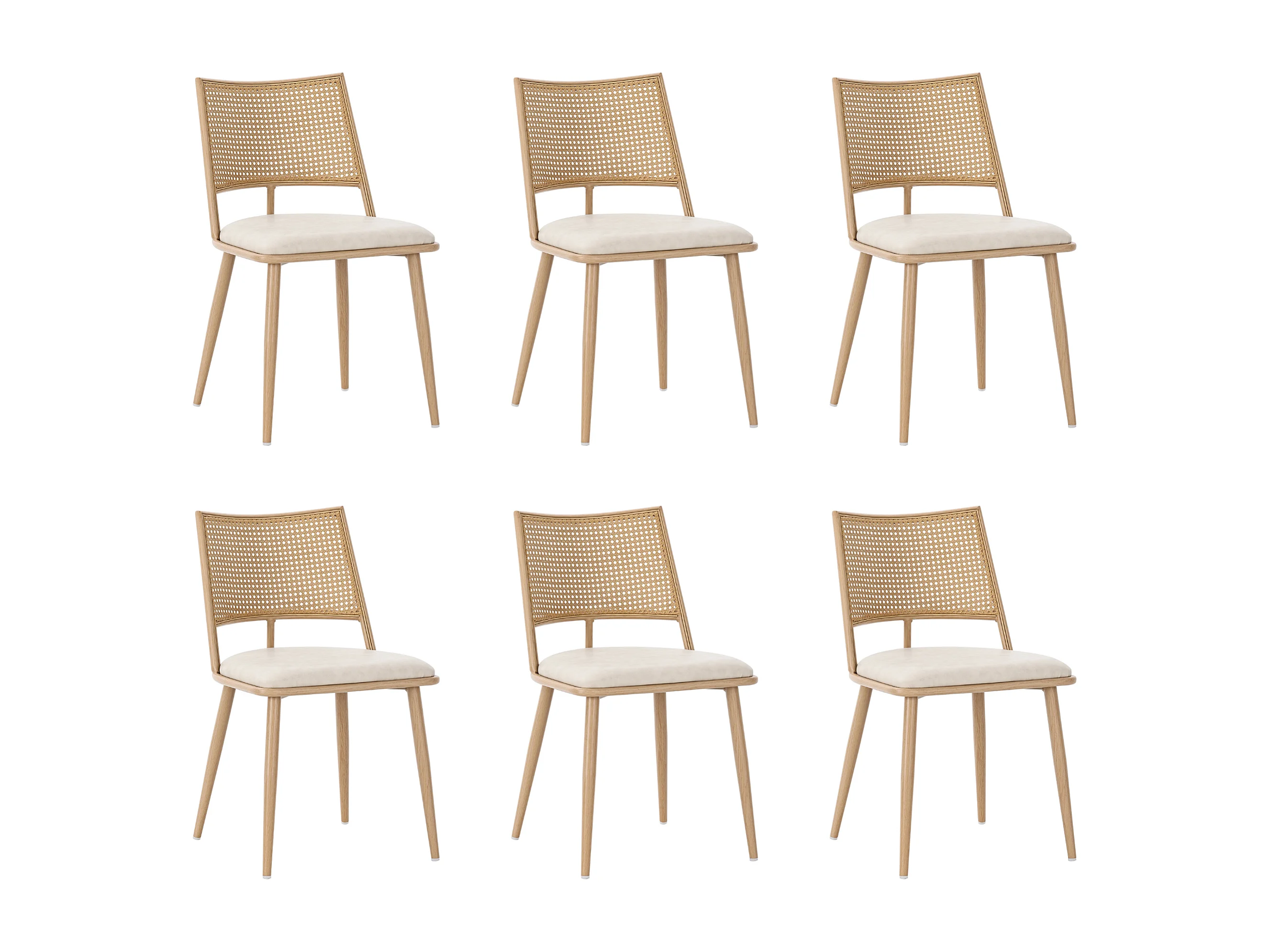 Set van 6 rotan fauteuils met PU-gevoerde zitting, beige