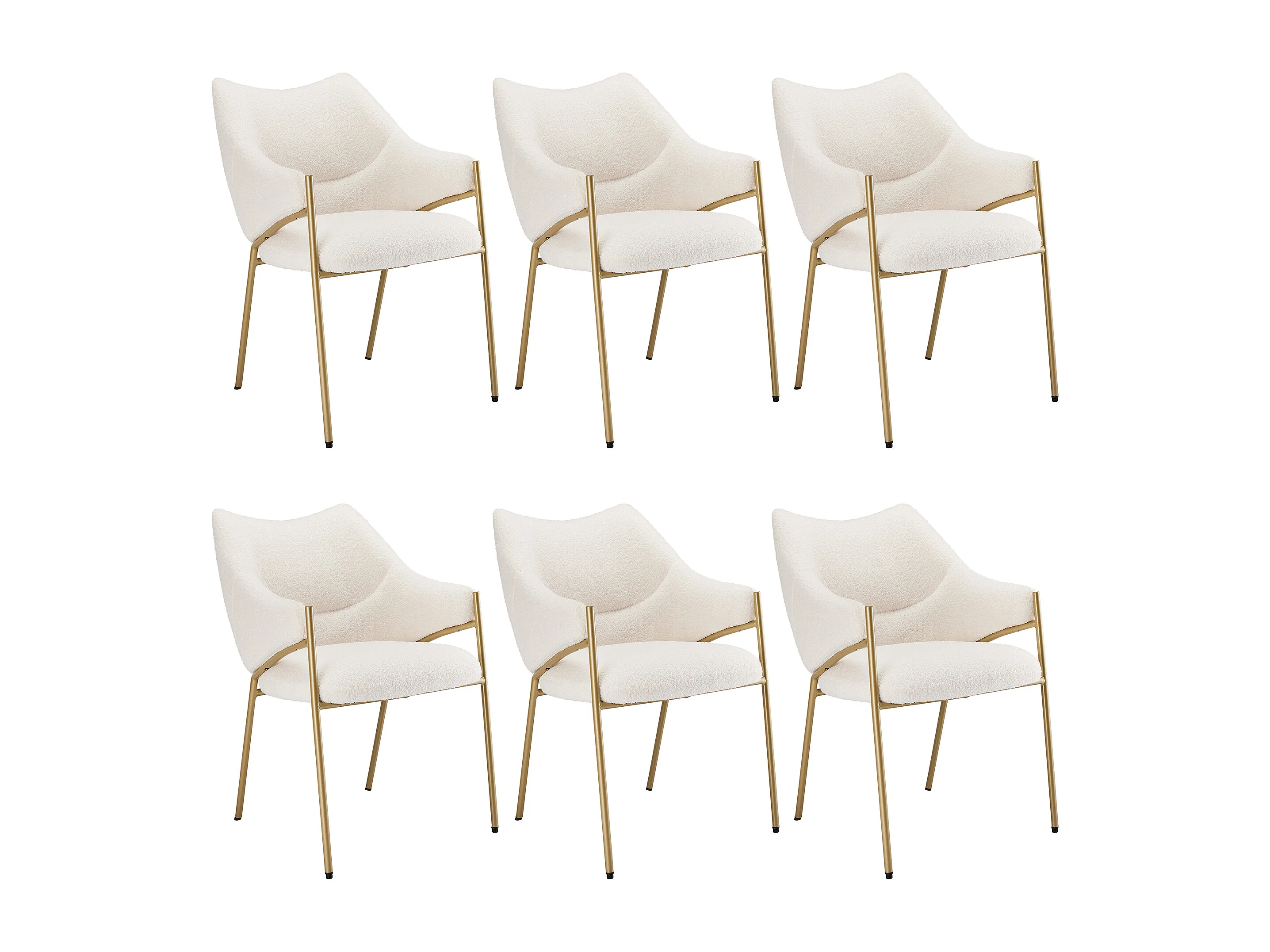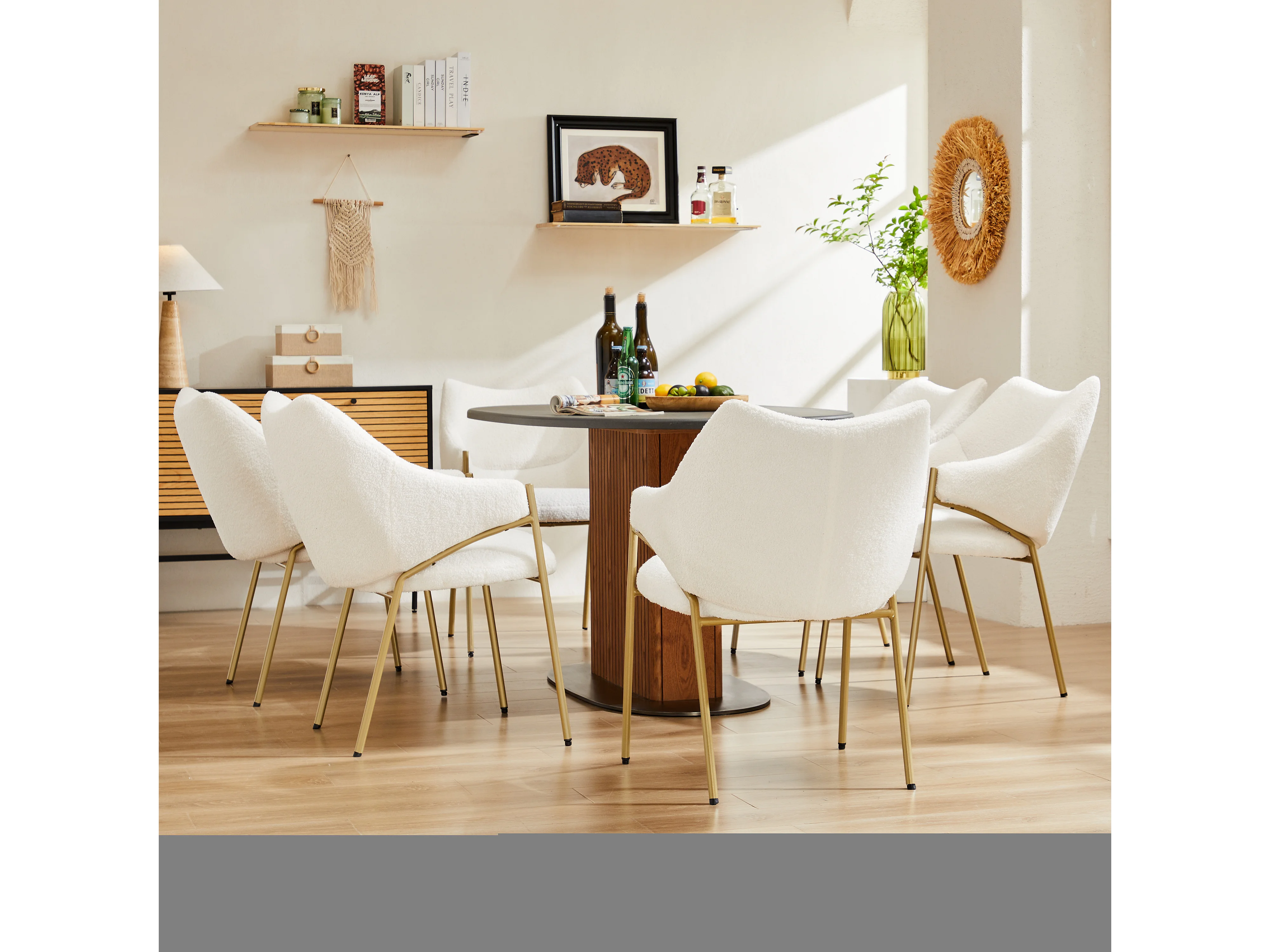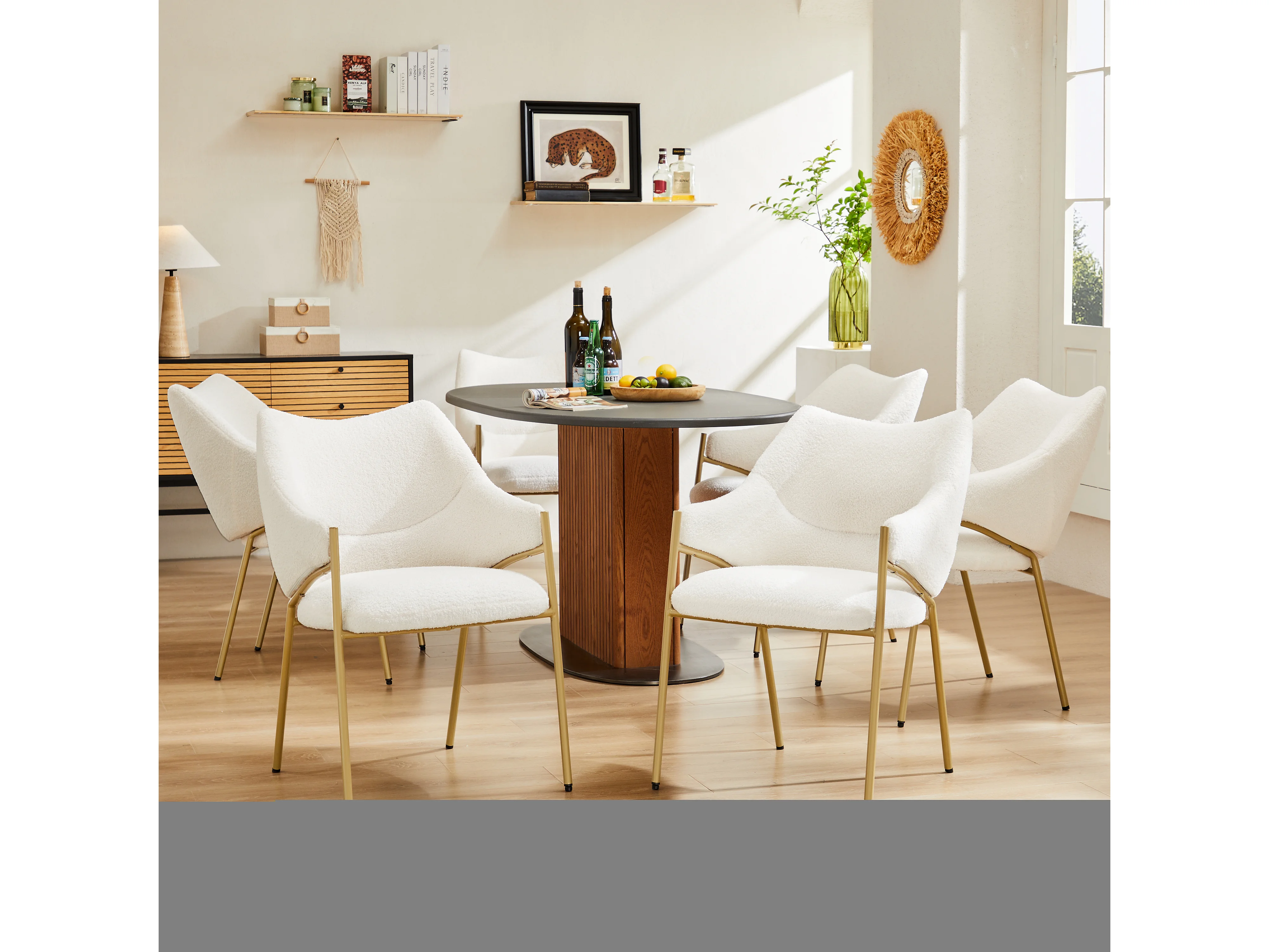 Set van 6 Sherpa eetkamerstoelen met gewatteerde rugleuning en armleuningen - Verstelbare poten - Beige