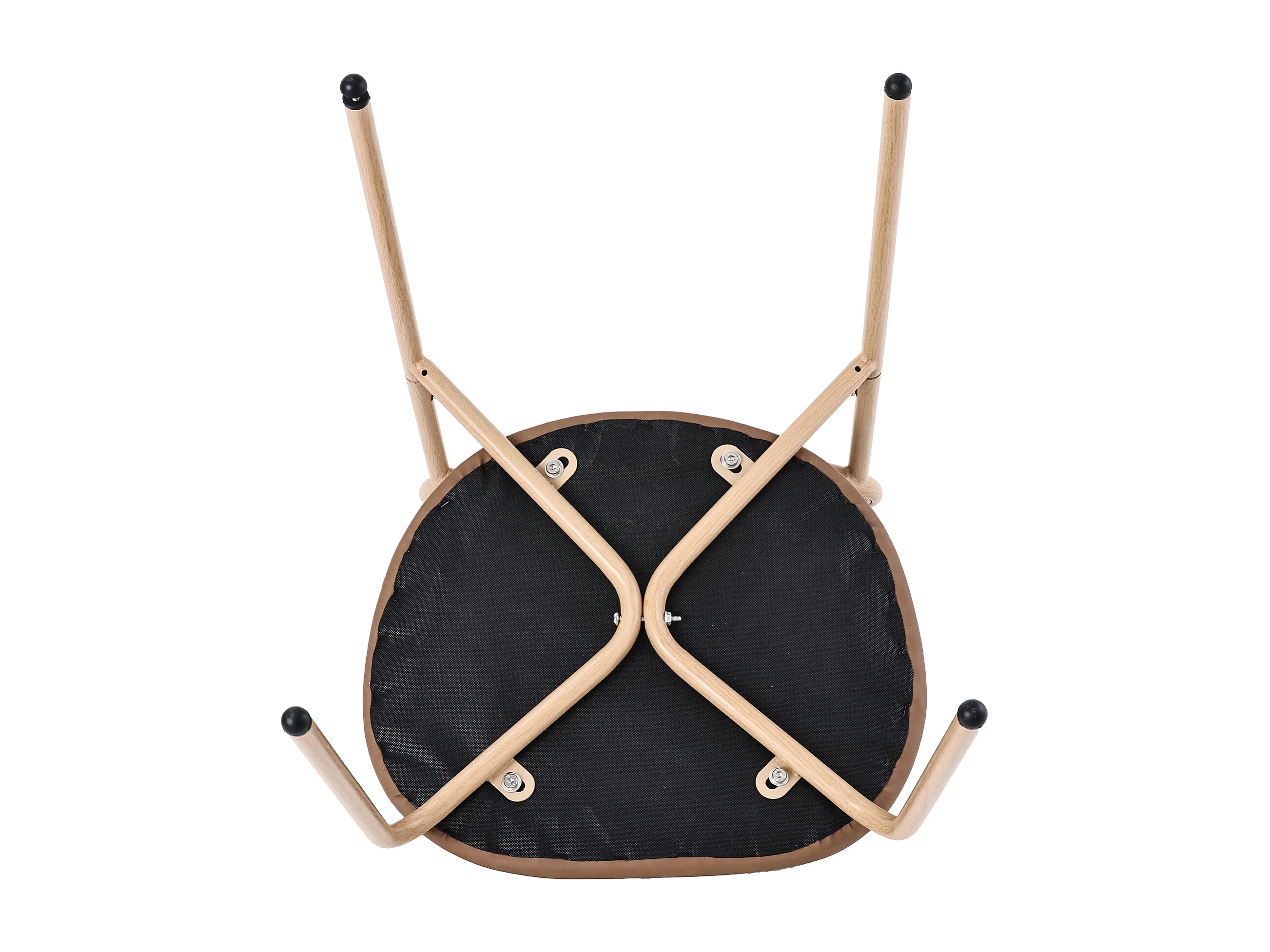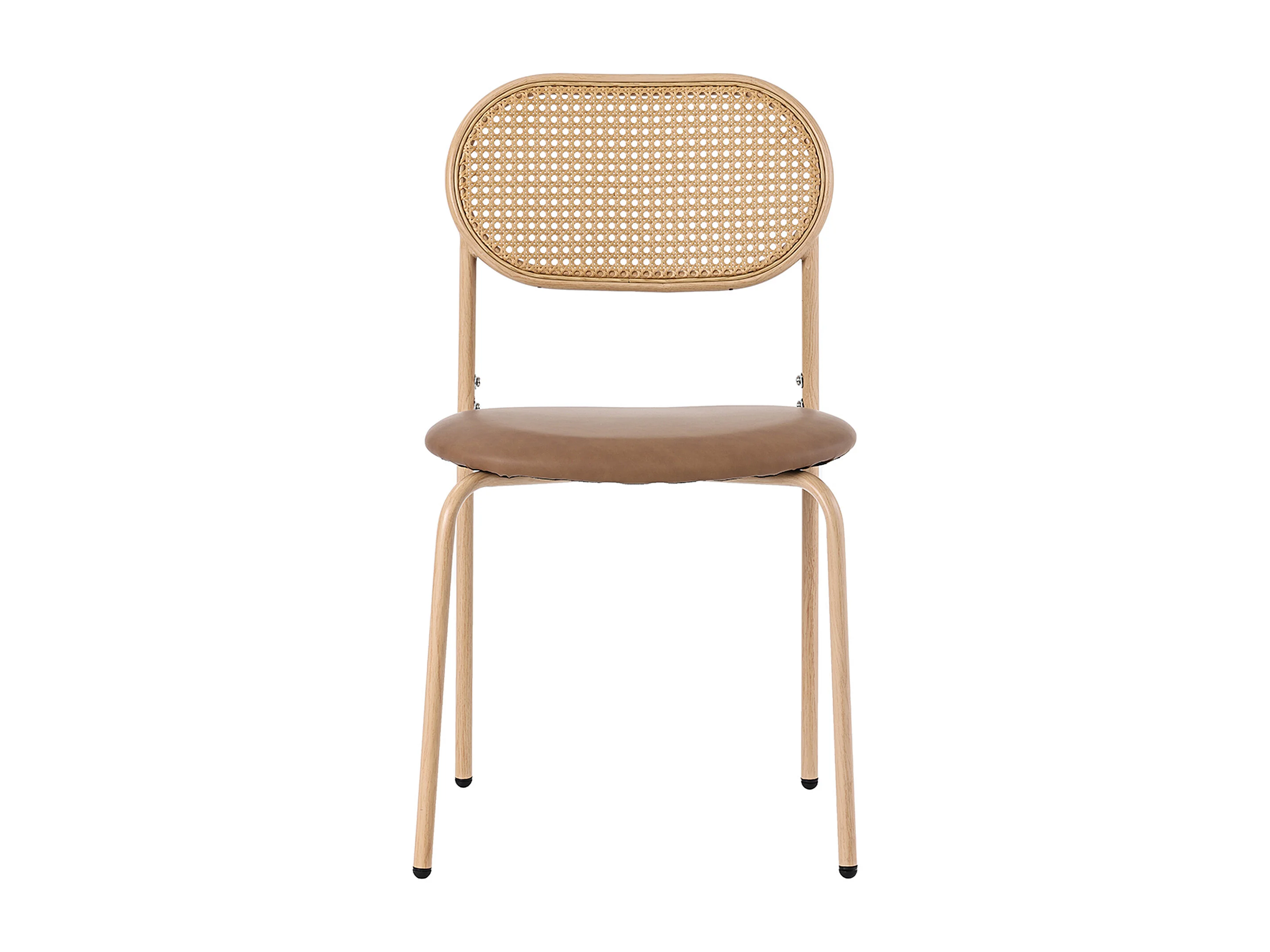 Set van 6 eetkamerstoelen, ovale rotan rugleuning, gemakkelijk schoon te maken PU-zitting, metalen poten, bruin