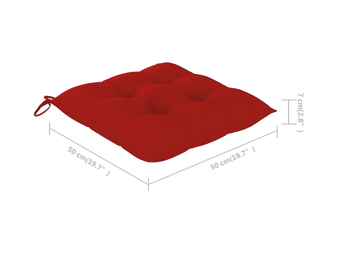 Set van 2 tuinstoelen met bordeauxrode kussens, massief teakhout