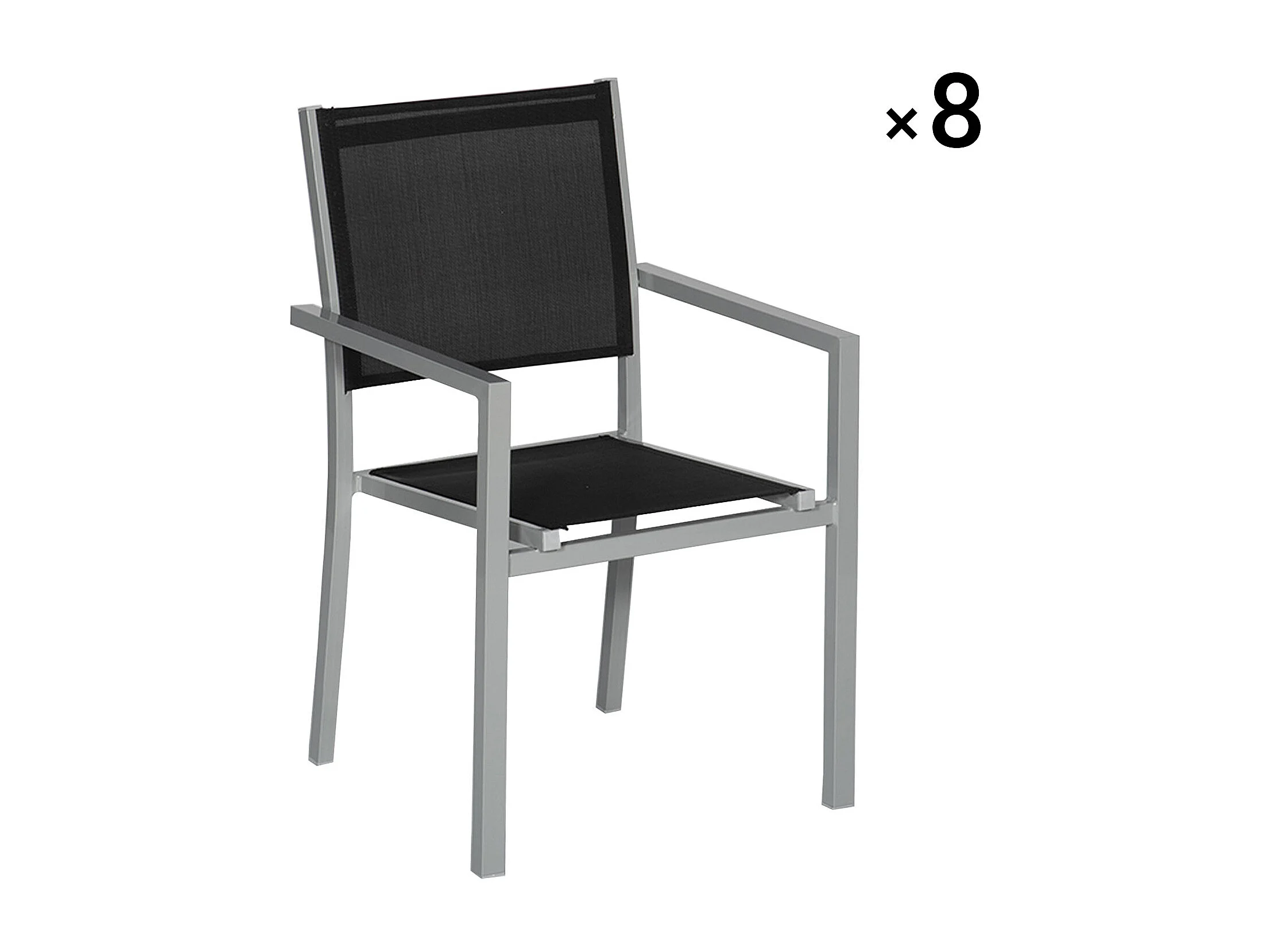Set van 8 grijze aluminium stoelen - zwart textilene