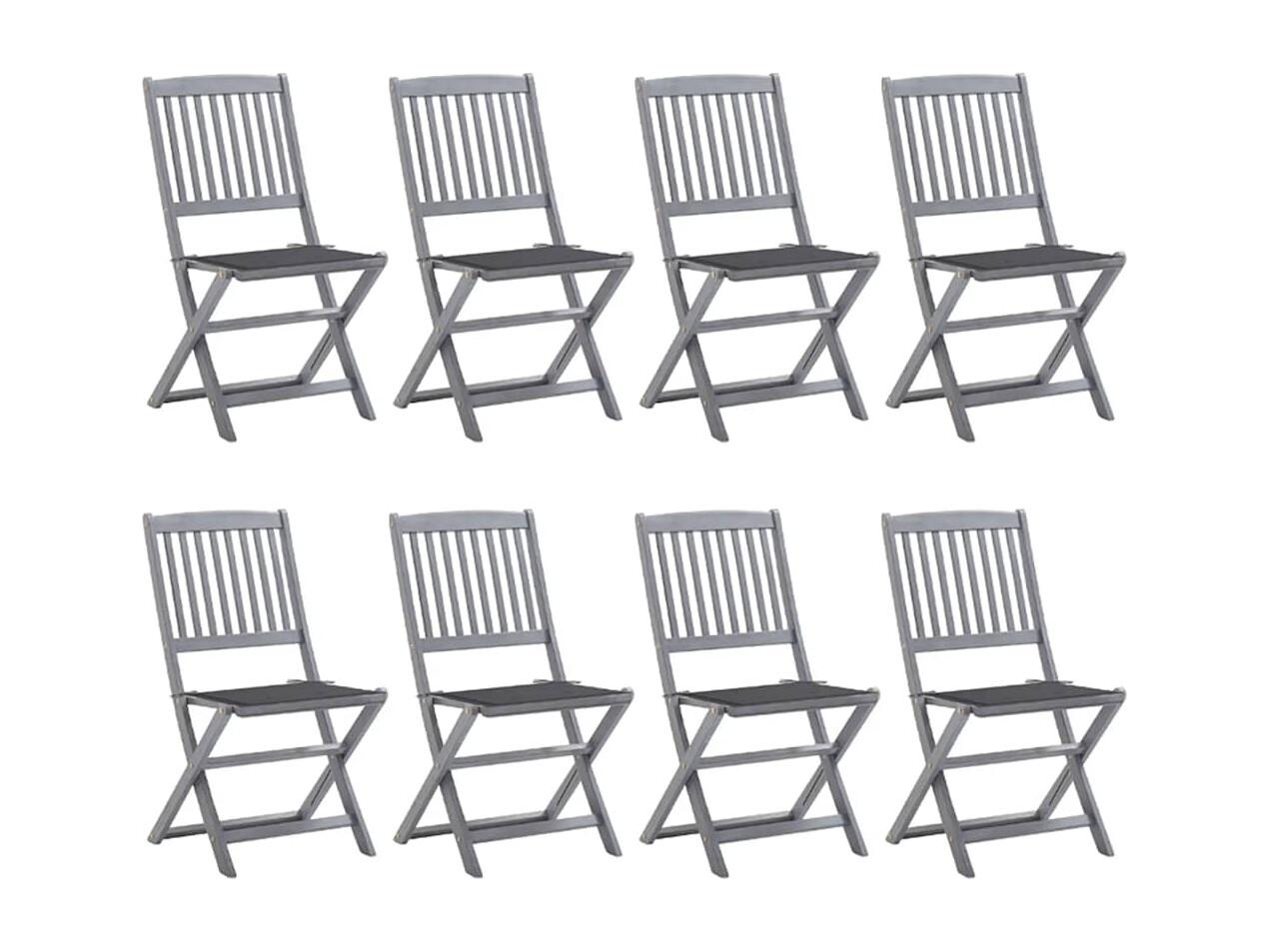 Set van 8 klapstoelen voor buiten met kussens van acaciahout