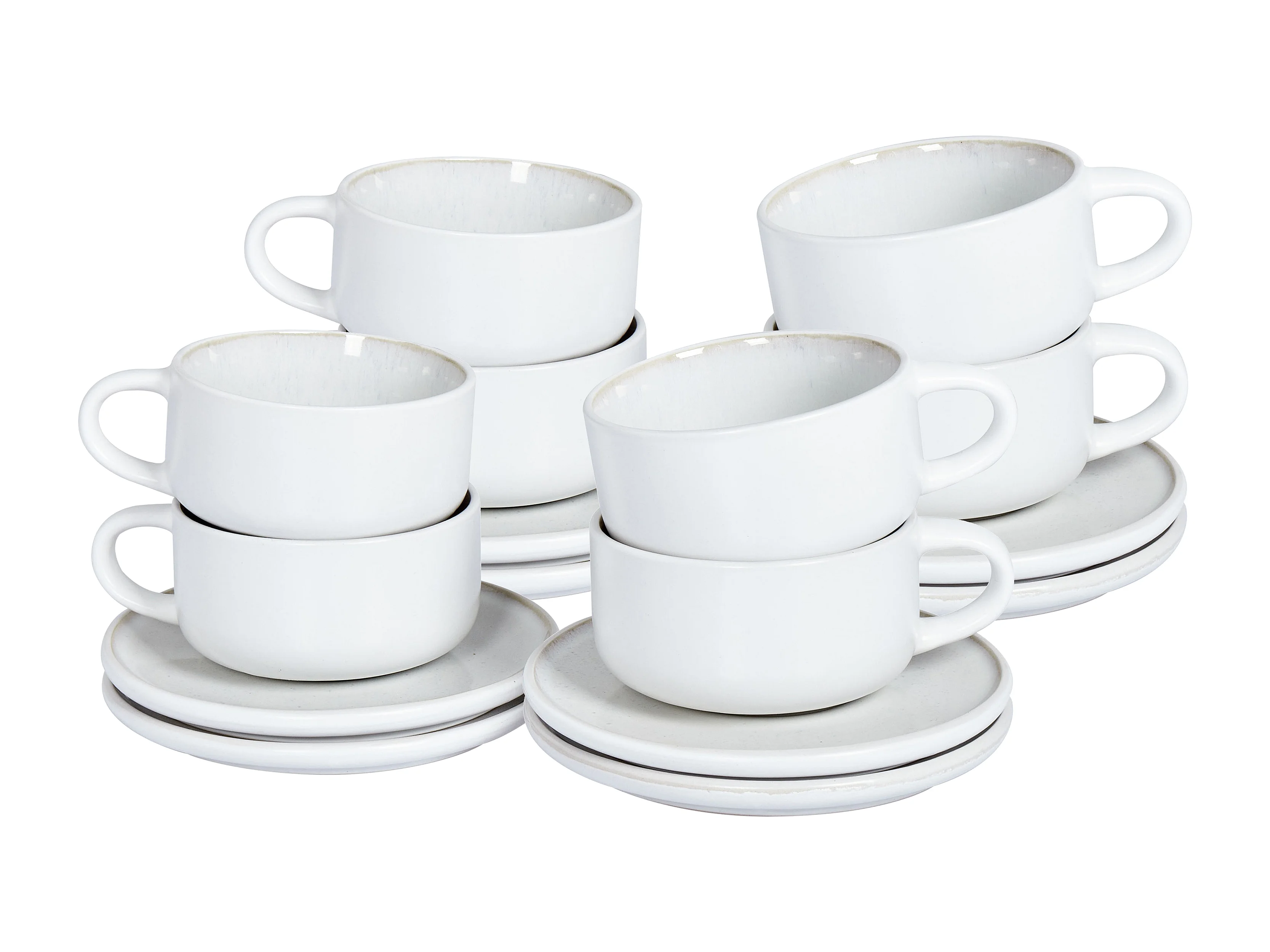 Set van 8 kopjes met schotels SESAME Steengoed Gebroken wit