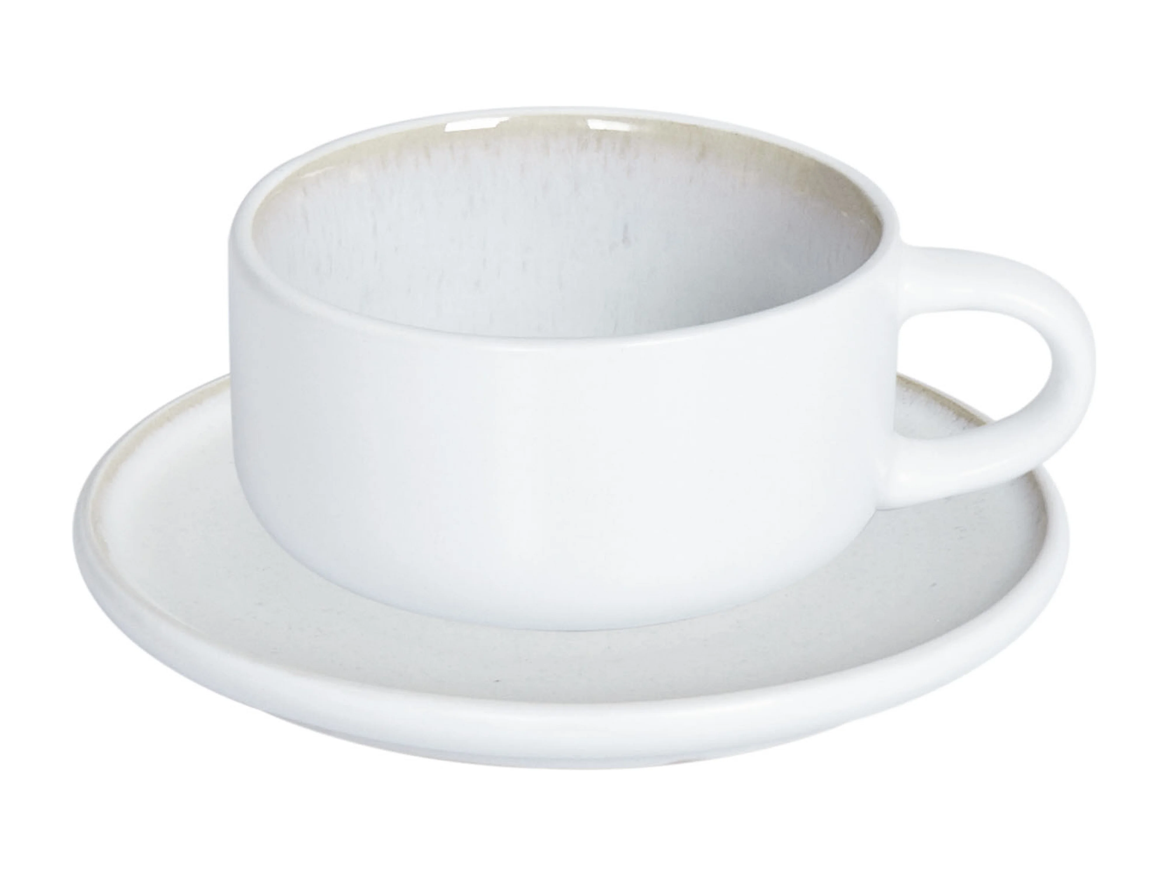Set van 4 kopjes met schotels CARAWAY Steengoed Gebroken wit
