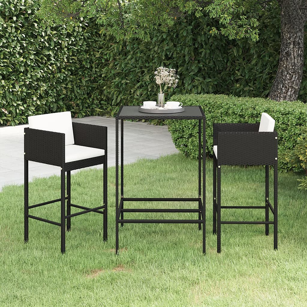 Mary 3-delige Tuinbarset met kussens poly rattan zwart