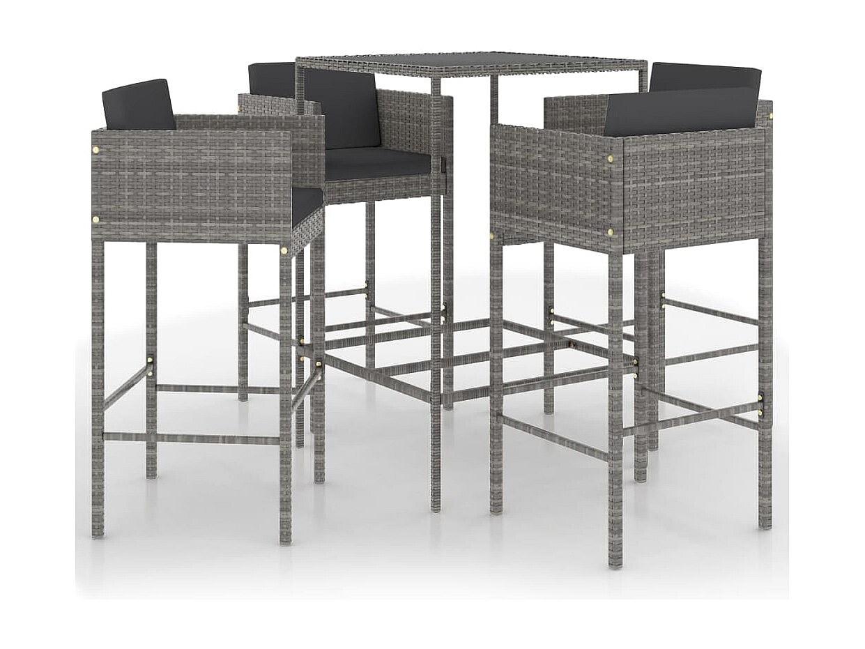 Danick 5-delige Tuinbarset met kussens poly rattan grijs